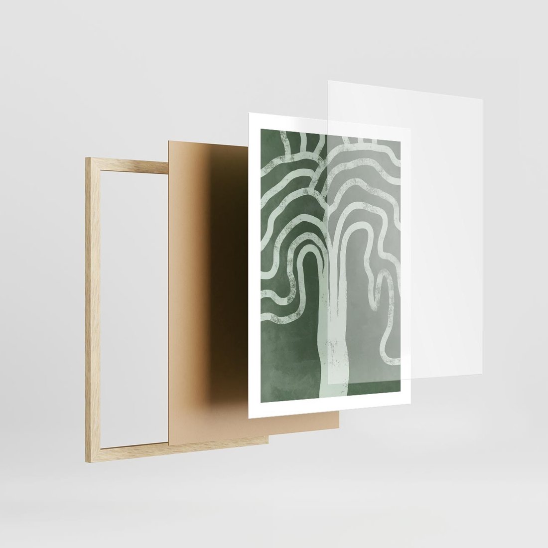 Ten abstrakcyjny plakat w odcieniach zieleni doskonale komponuje się ze skandynawskimi wnętrzami. Jego wyjątkowy kształt wprowadza do przestrzeni oryginalność i charakterystyczną dla tego stylu świeżość, tworząc jednocześnie interesujący akcent artystyczny.