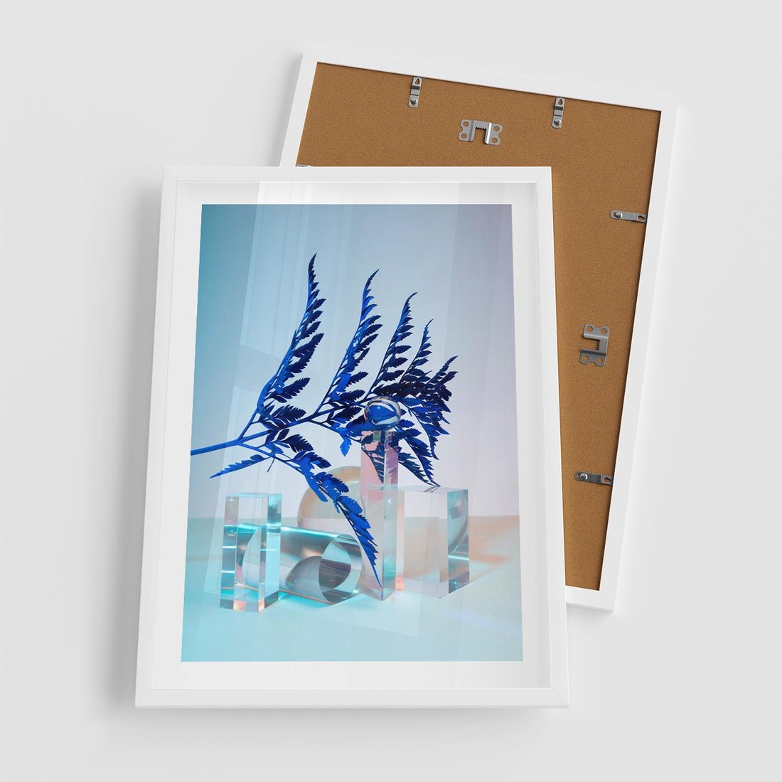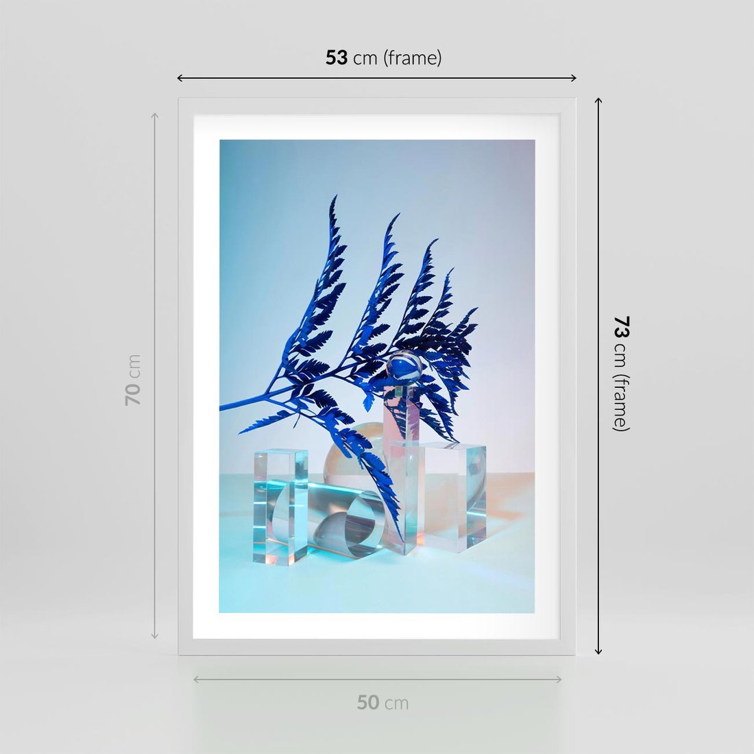 Plakat w ramie 50x70 - Intensywny Kolor Natury - liście, kobalt - rama biała