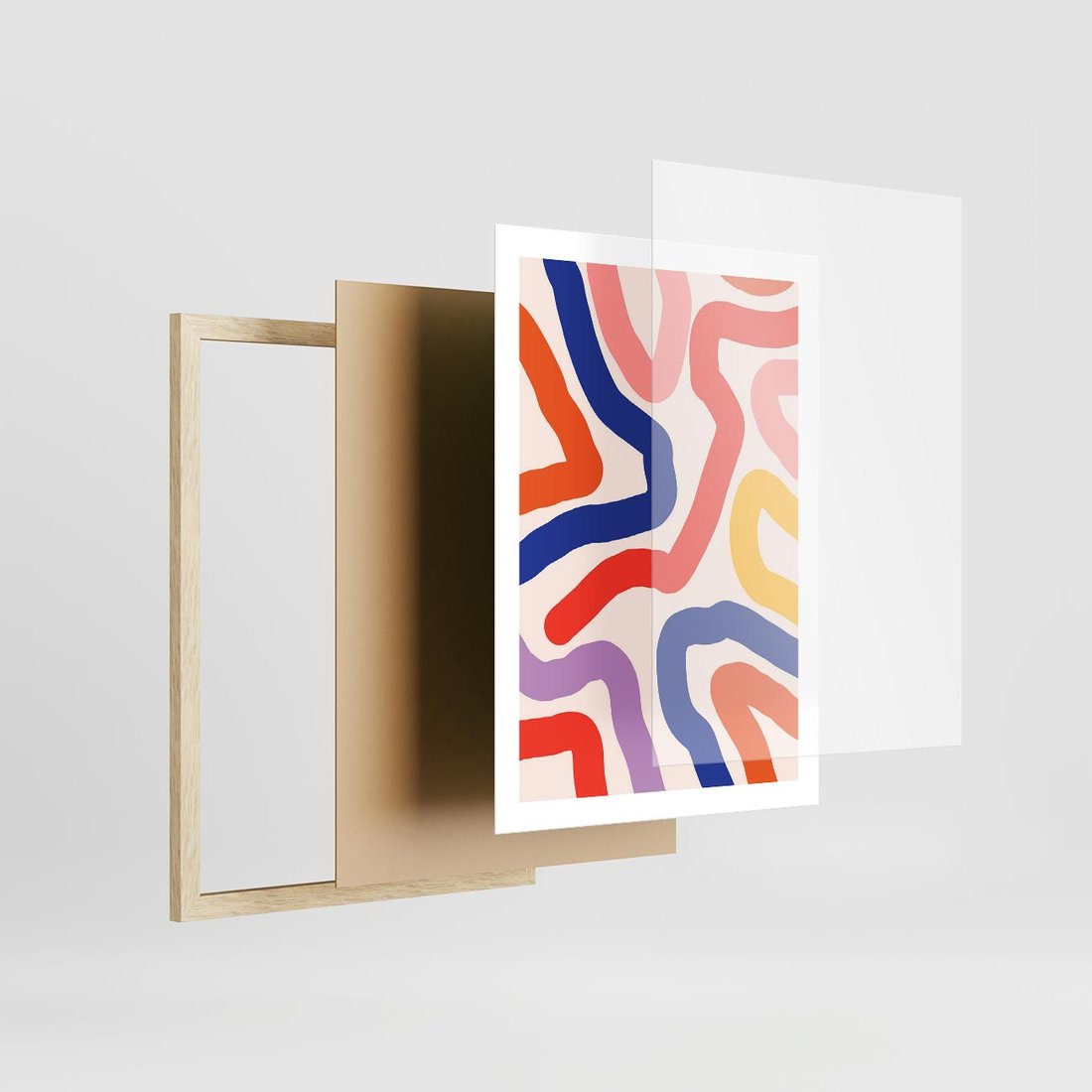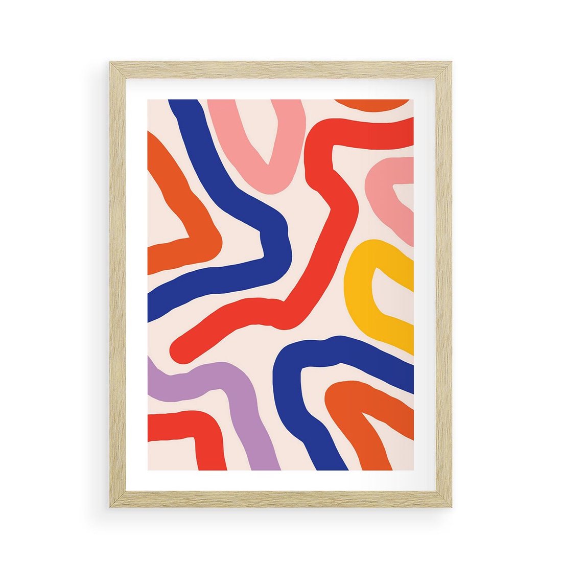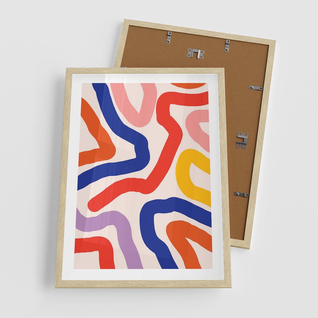 Plakat w ramie 50x70 - Intrygujące Widzenia - abstrakcyjny kolorowy obraz, kolorowe linie - rama drewno