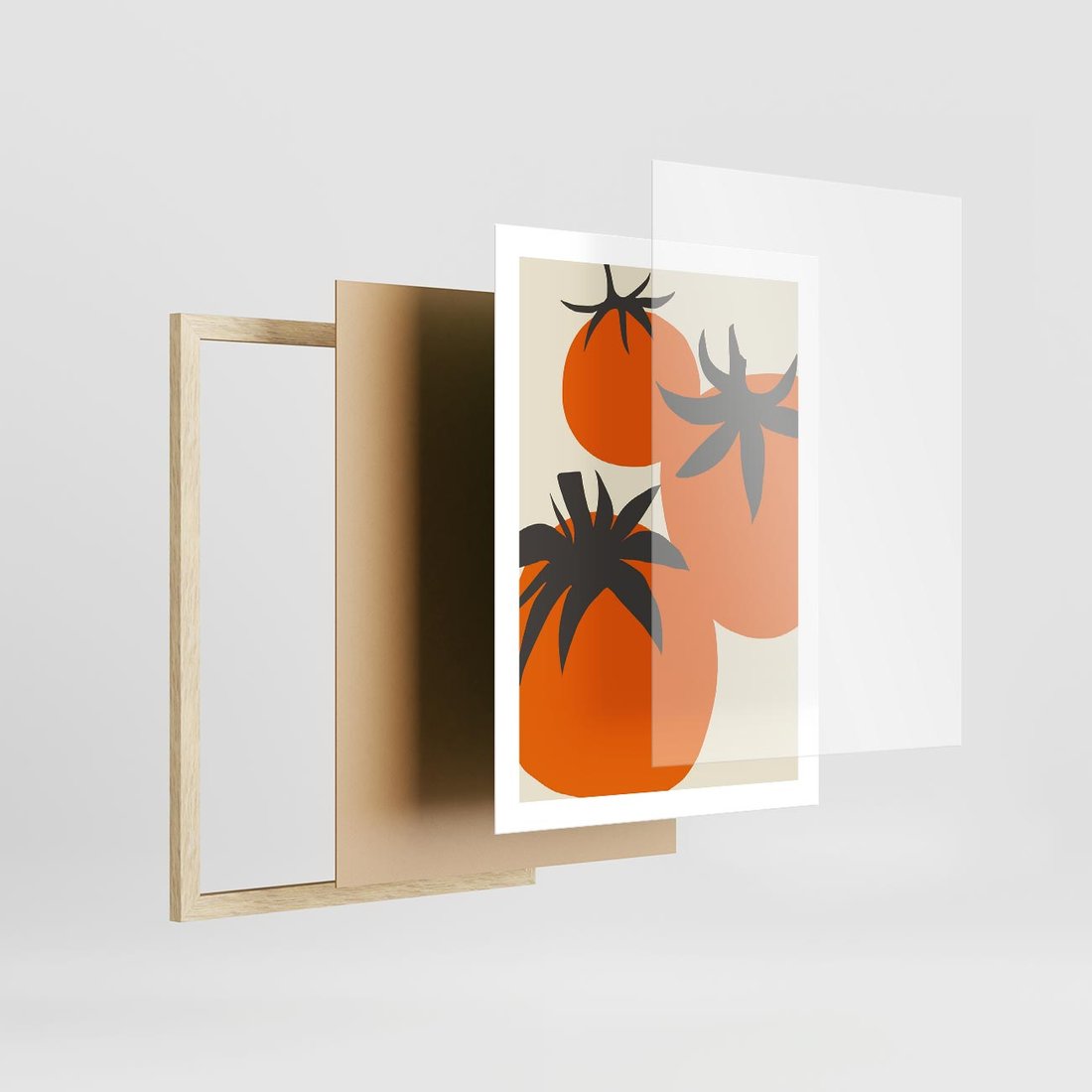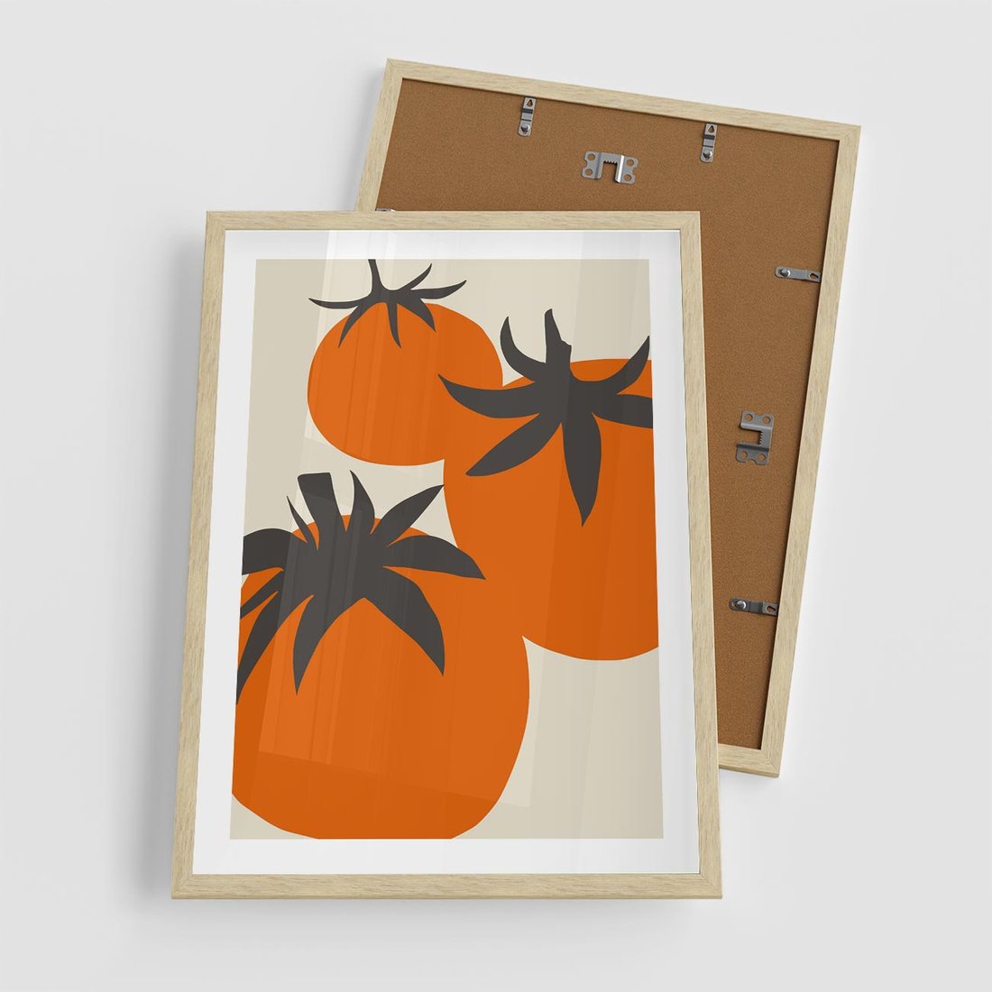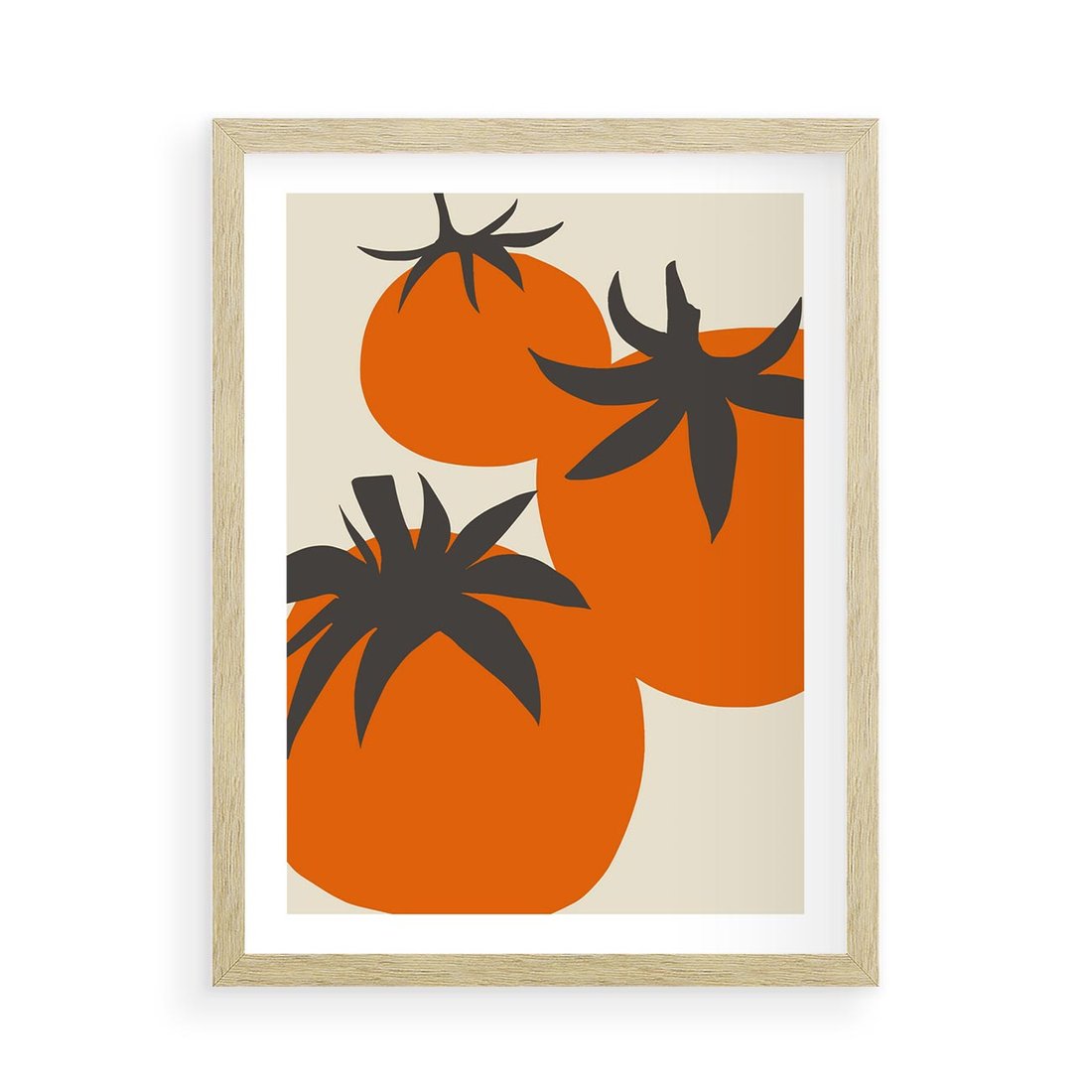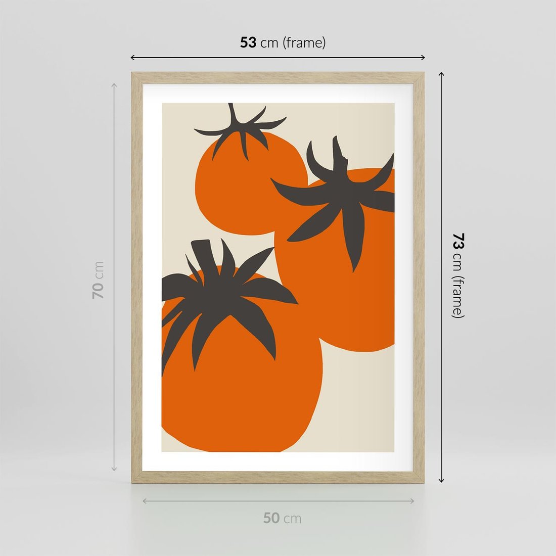 Plakat w ramie 50x70 - Jadalne Kształty - nowoczesny plakat do kuchni, pomidory - rama drewno