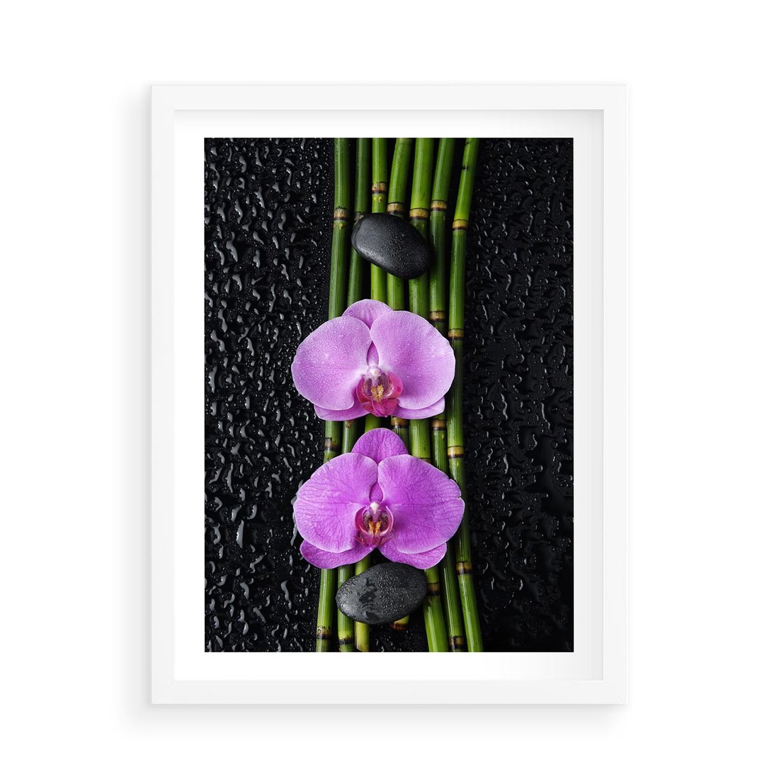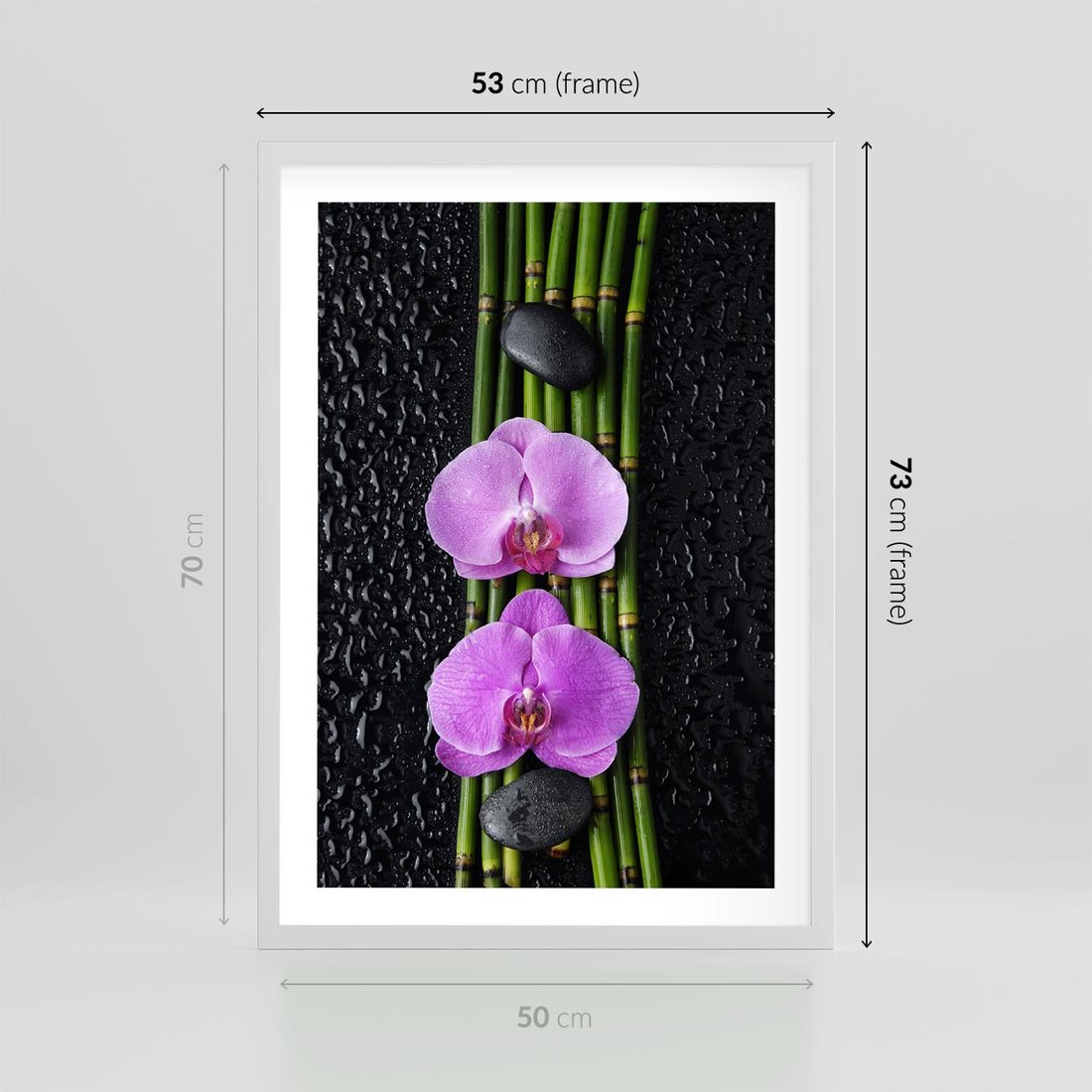 Plakat w ramie 50x70 - Japońskie Spa w Otoczeniu Storczyków - storczyk, spa - rama biała