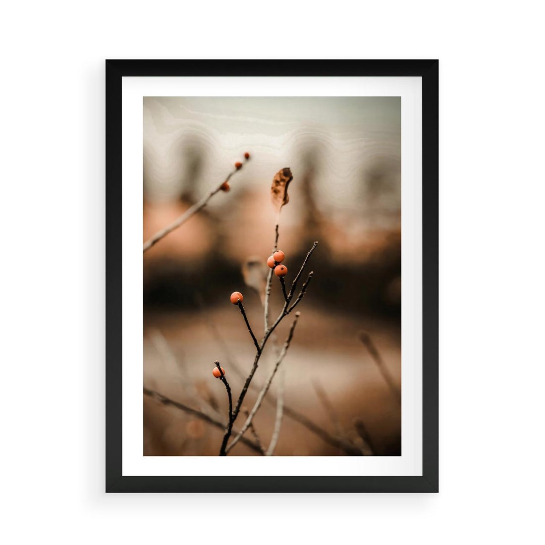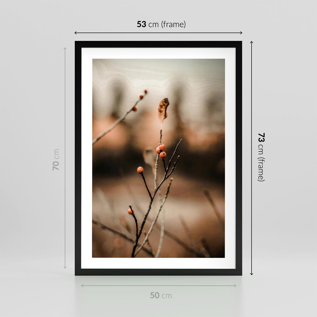 Plakat w ramie 50x70 - Jarzębina w Pejzażu - jesień, gałązka - rama czarna