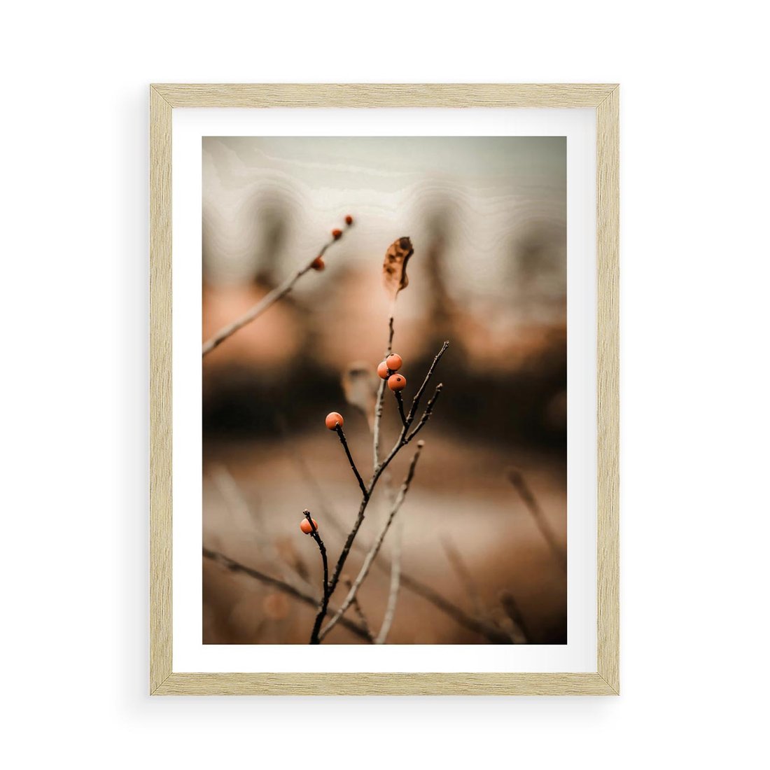 Plakat w ramie 50x70 - Jarzębina w Pejzażu - jesień, gałązka - rama drewno