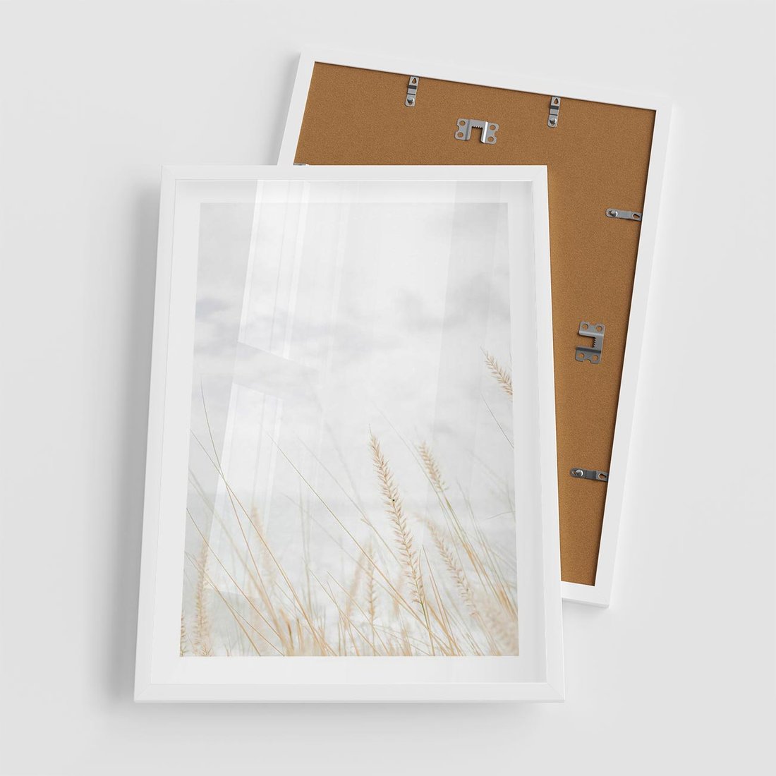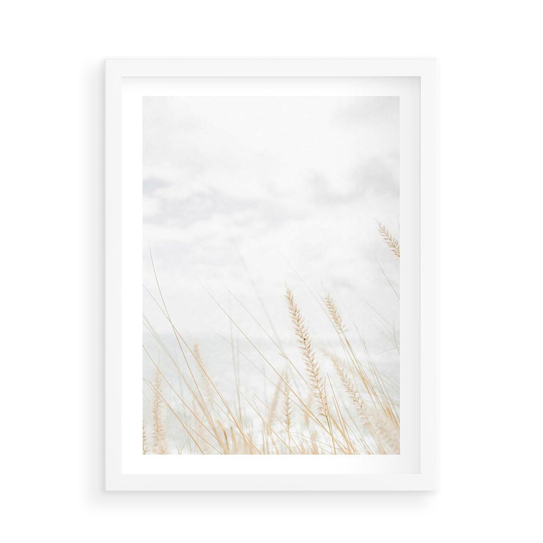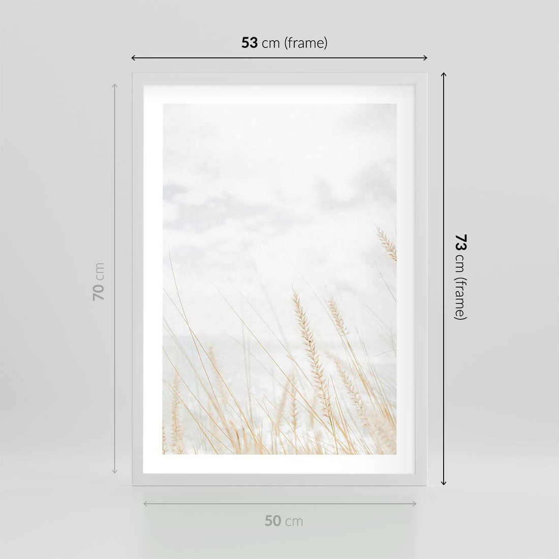 Plakat w ramie 50x70 - Jasna Delikatność: Fotografia Suchych Traw - suche trawy, jasna fotografia - rama biała