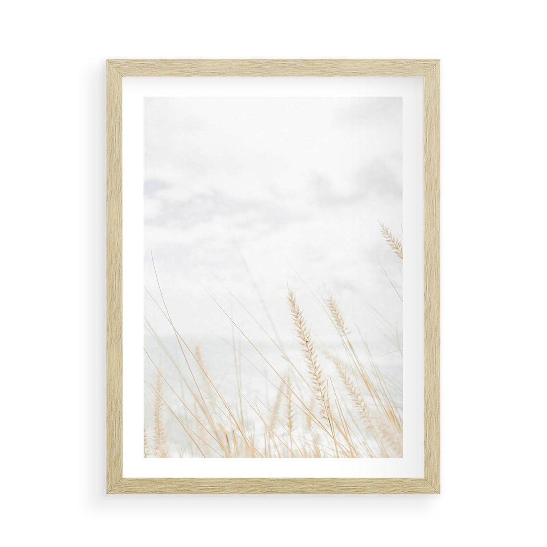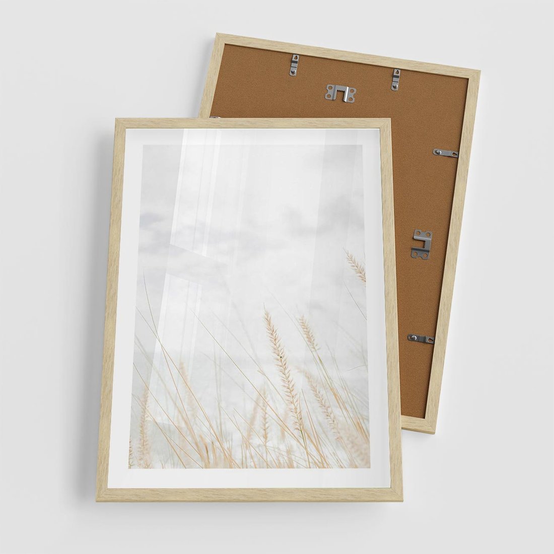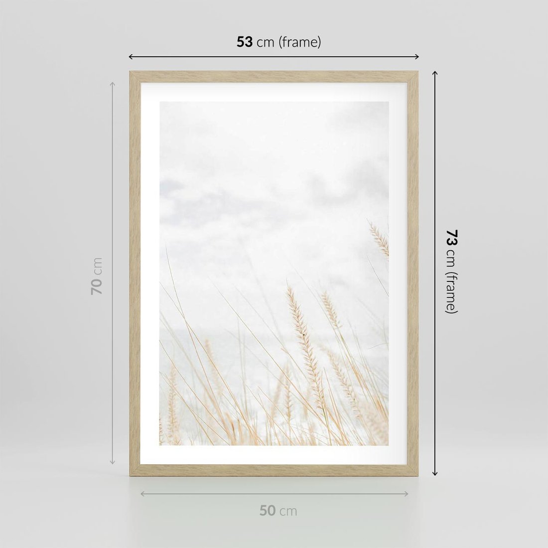 Plakat w ramie 50x70 - Jasna Delikatność: Fotografia Suchych Traw - suche trawy, jasna fotografia - rama drewno