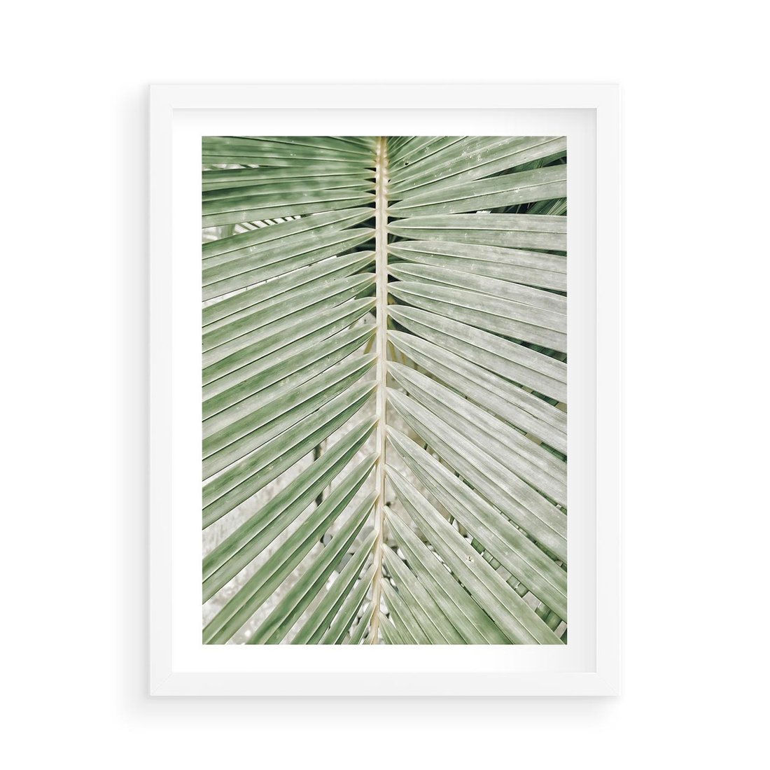 Plakat w ramie 50x70 - Jasna Zieleń Palmy - liść palmy, zbliżenie - rama biała