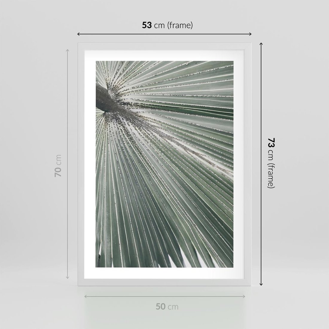 Plakat w ramie 50x70 - Jasnozielony Świat - palma, liść - rama biała