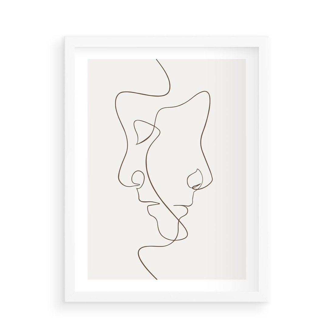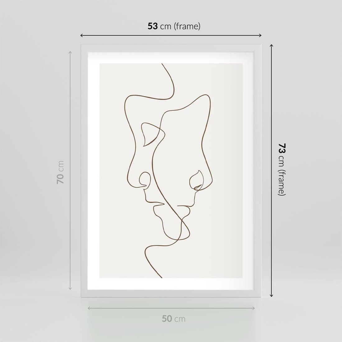 Plakat w ramie 50x70 - Jedna Linia, Dwie Twarze - minimalistyczny plakat, dwie twarze - rama biała