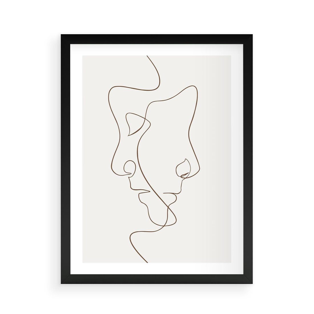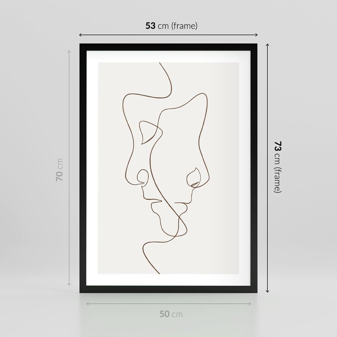 Plakat w ramie 50x70 - Jedna Linia, Dwie Twarze - minimalistyczny plakat, dwie twarze - rama czarna