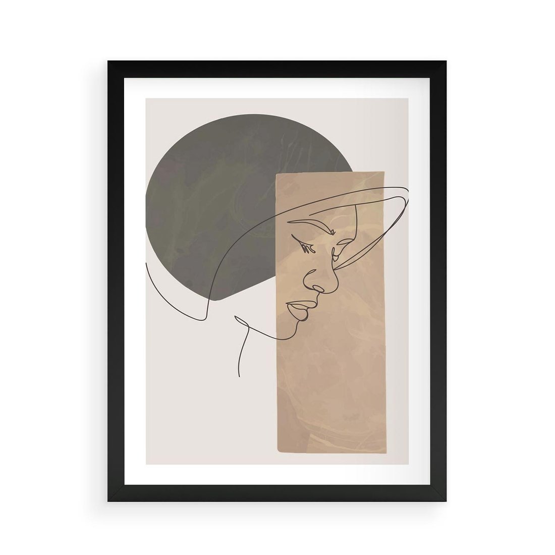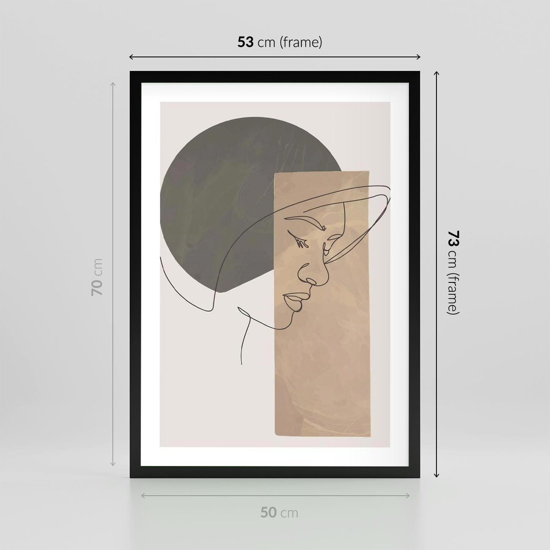 Plakat w ramie 50x70 - Jedną Linią: Kobieca Twarz - abstrakcja, plamy w tle - rama czarna