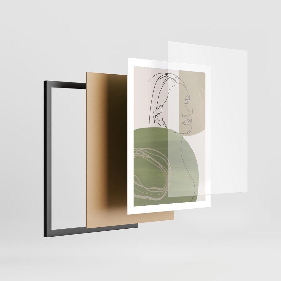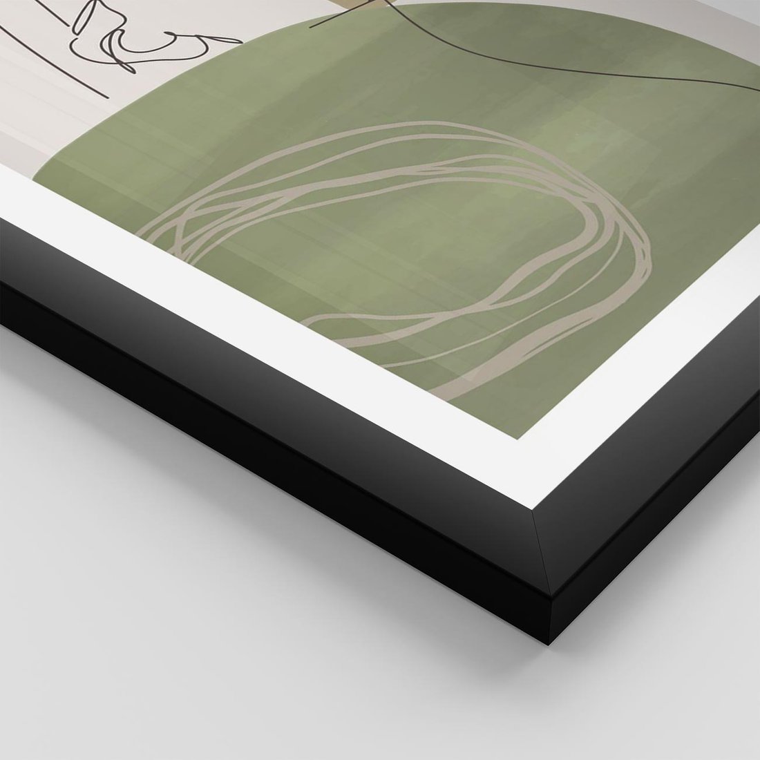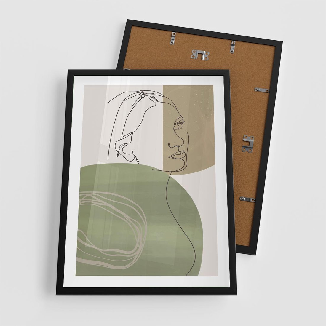 Plakat w ramie 50x70 - Jedna Linia, Wiele Emocji - akwarelowe plamy, na nich szkic postaci kobiety jedną linią - rama czarna