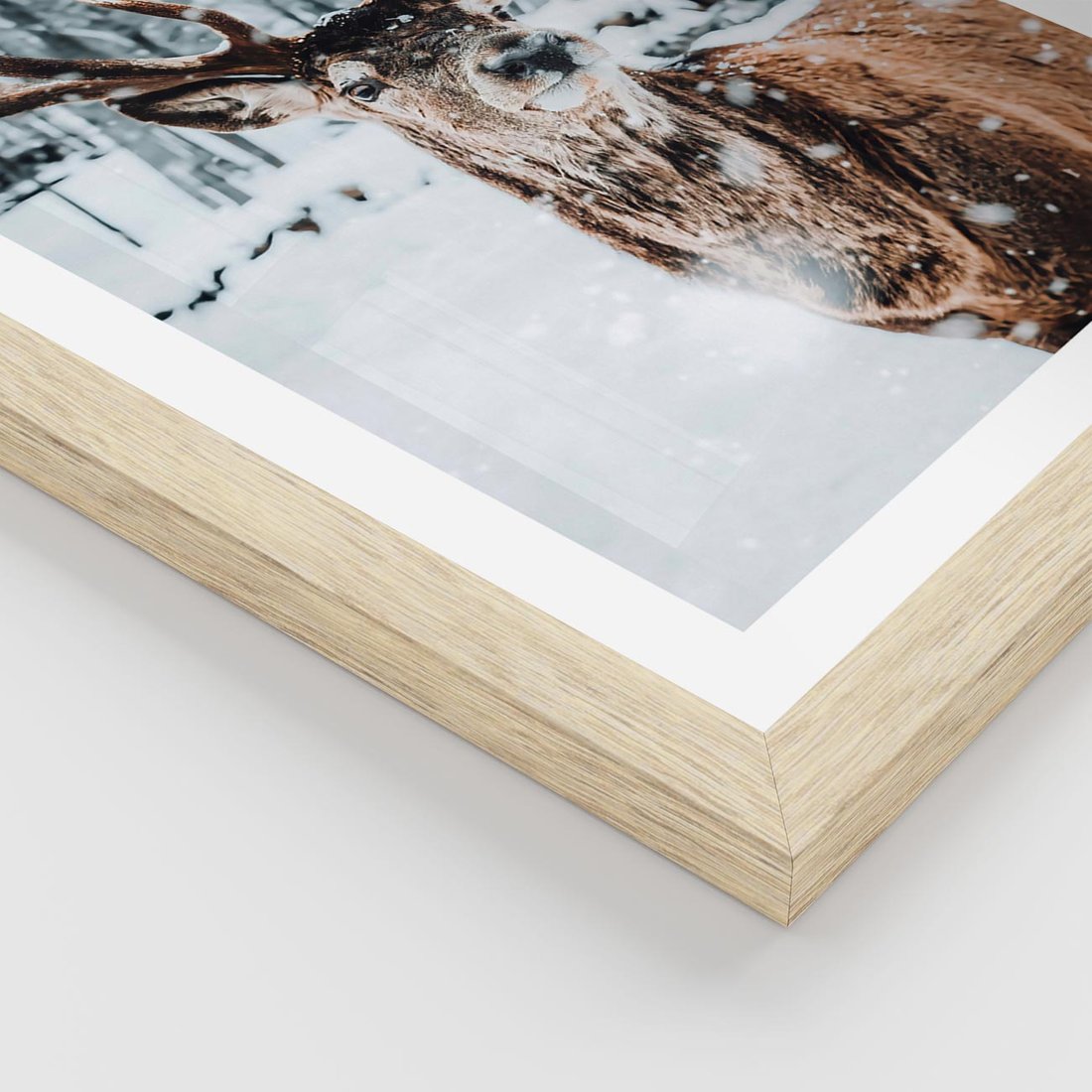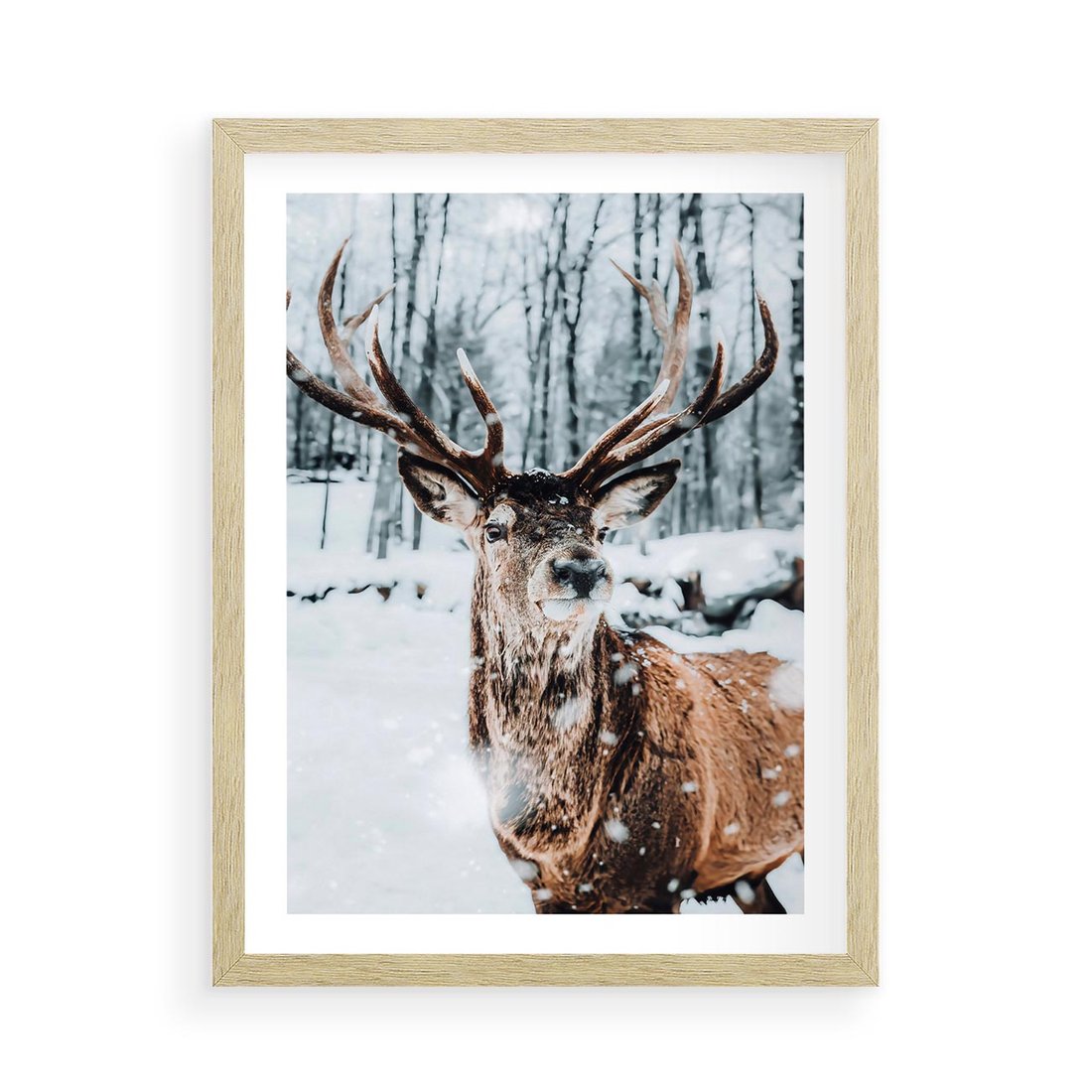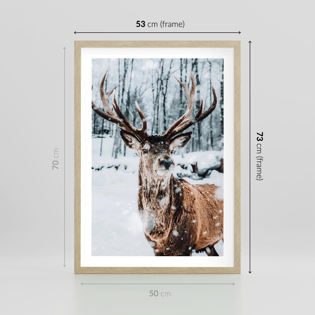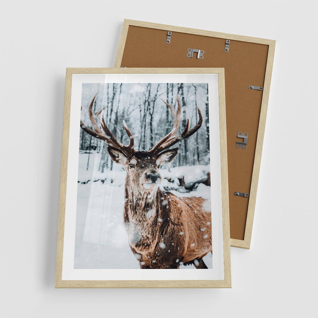 Plakat w ramie 50x70 - Jeleń na Zdjęciu pod Śniegiem - jeleń, zima - rama drewno