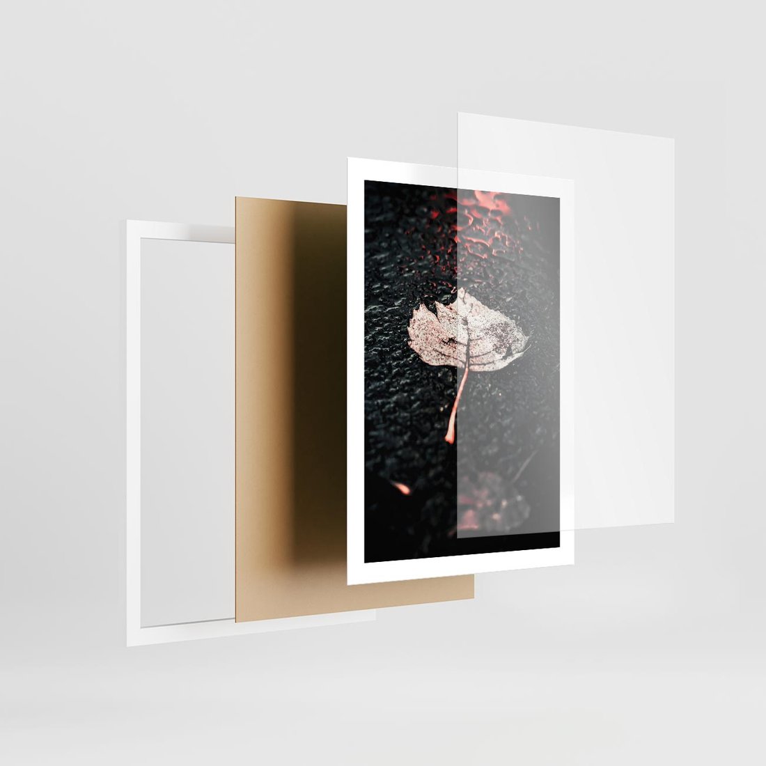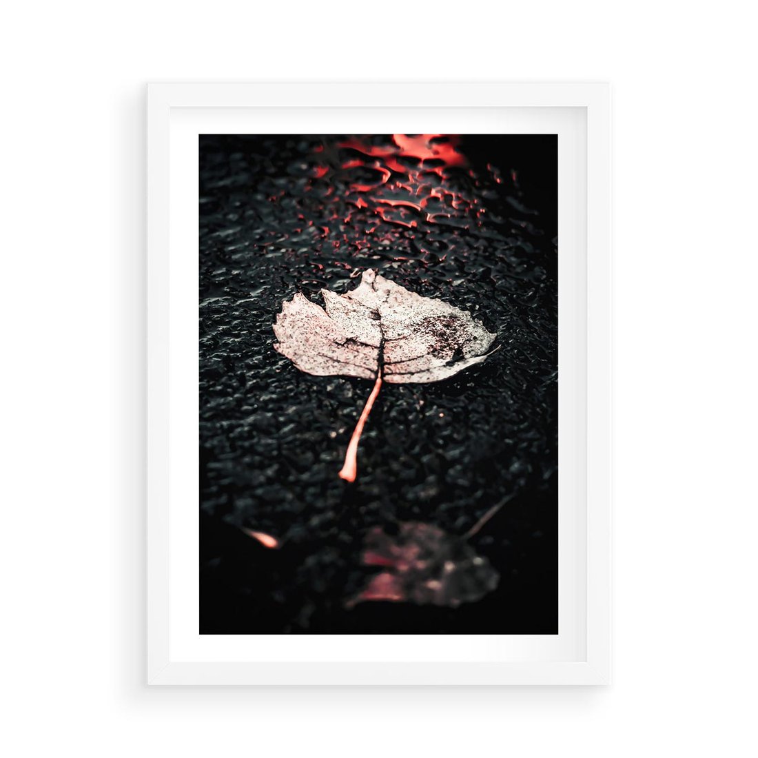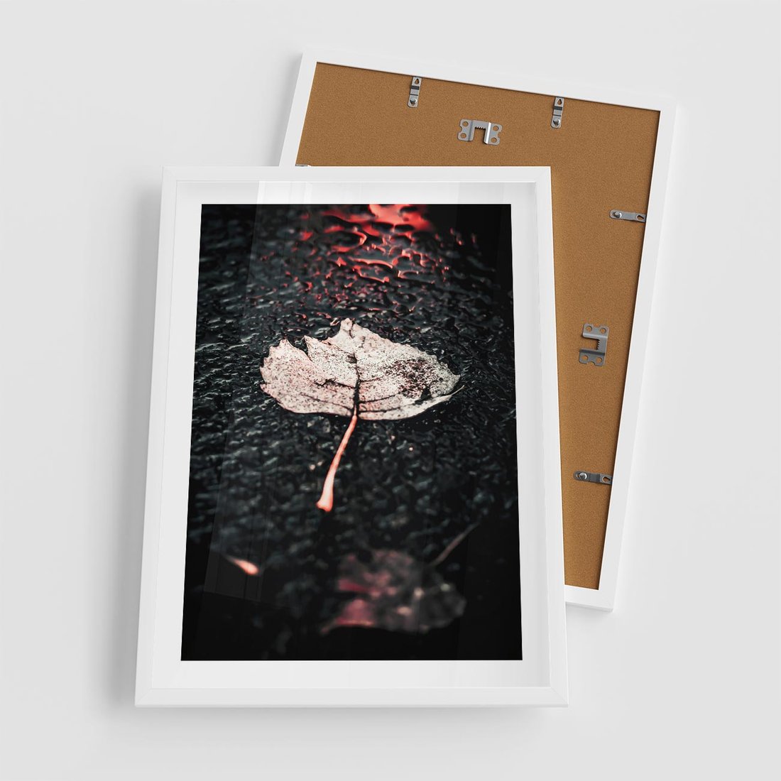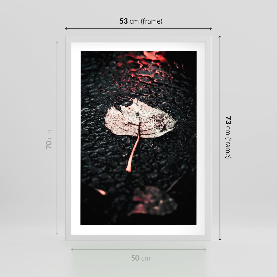 Plakat w ramie 50x70 - Jesień w Detalu: Liść na Mokrej Drodze - liść, jesień - rama biała
