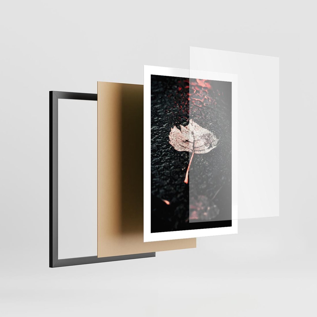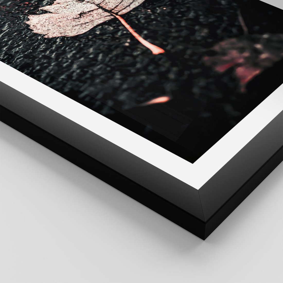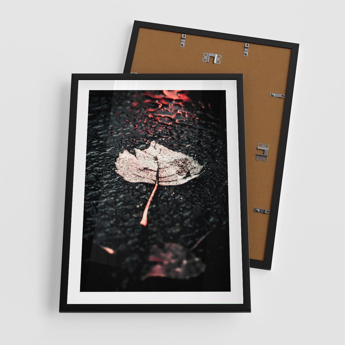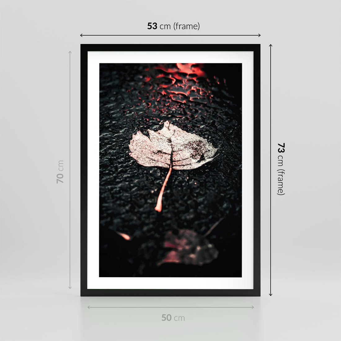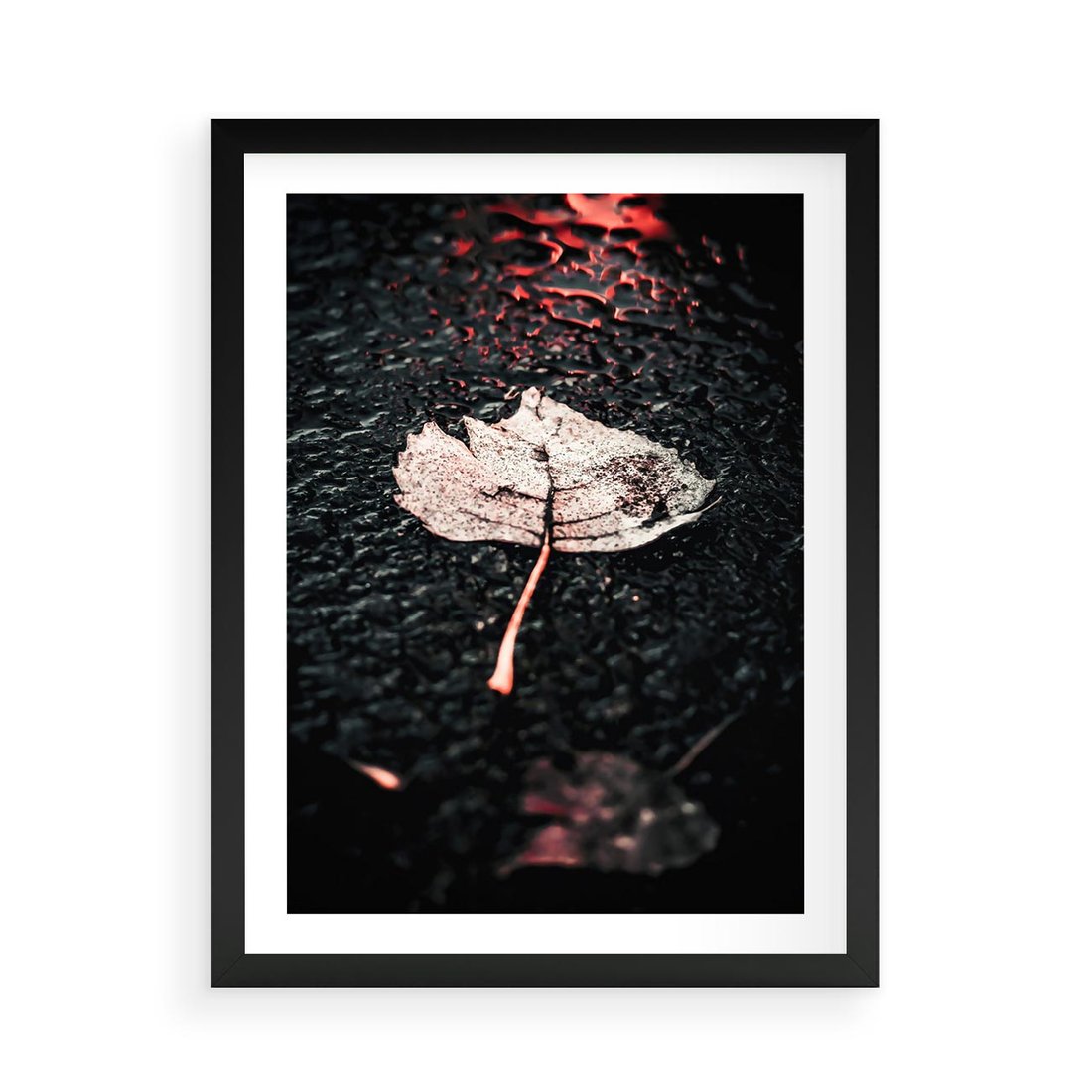 Plakat w ramie 50x70 - Jesień w Detalu: Liść na Mokrej Drodze - liść, jesień - rama czarna