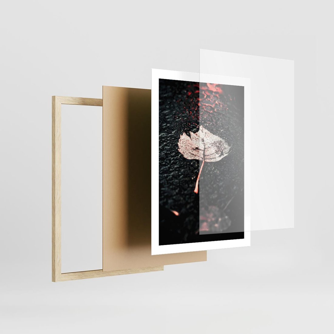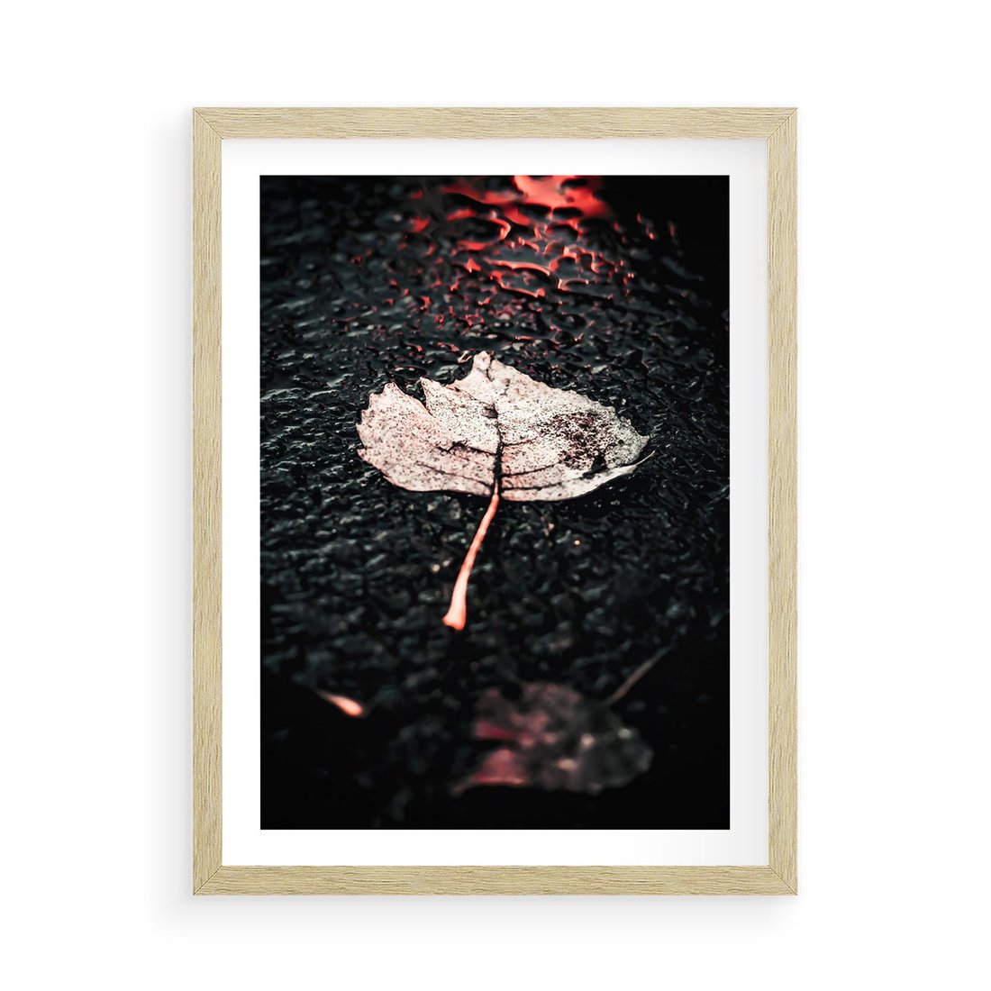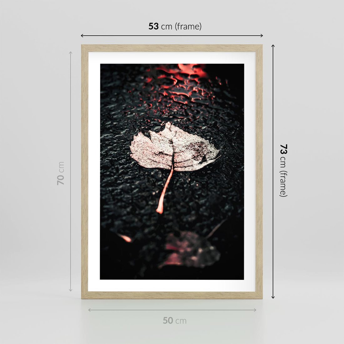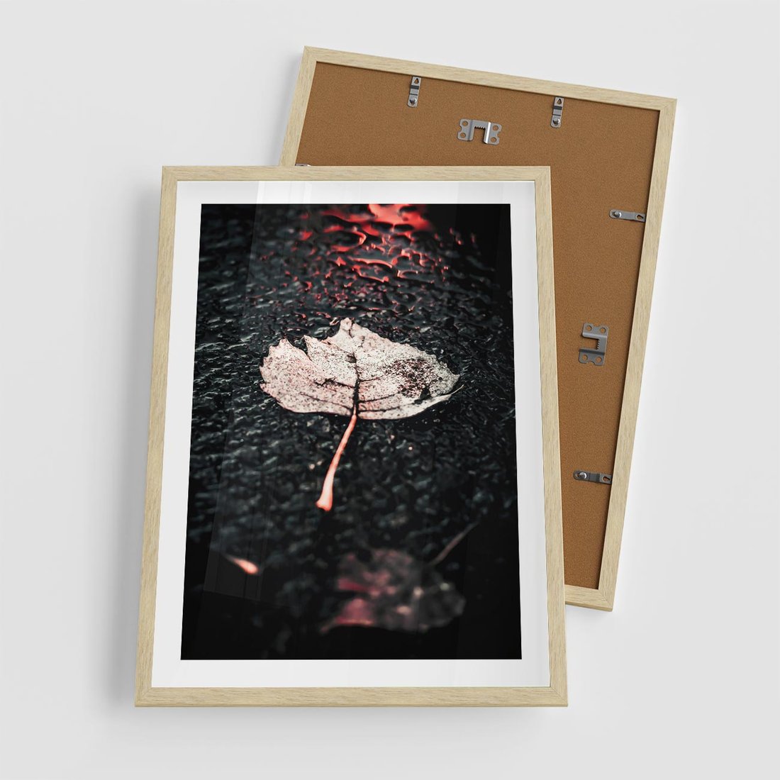 Plakat w ramie 50x70 - Jesień w Detalu: Liść na Mokrej Drodze - liść, jesień - rama drewno