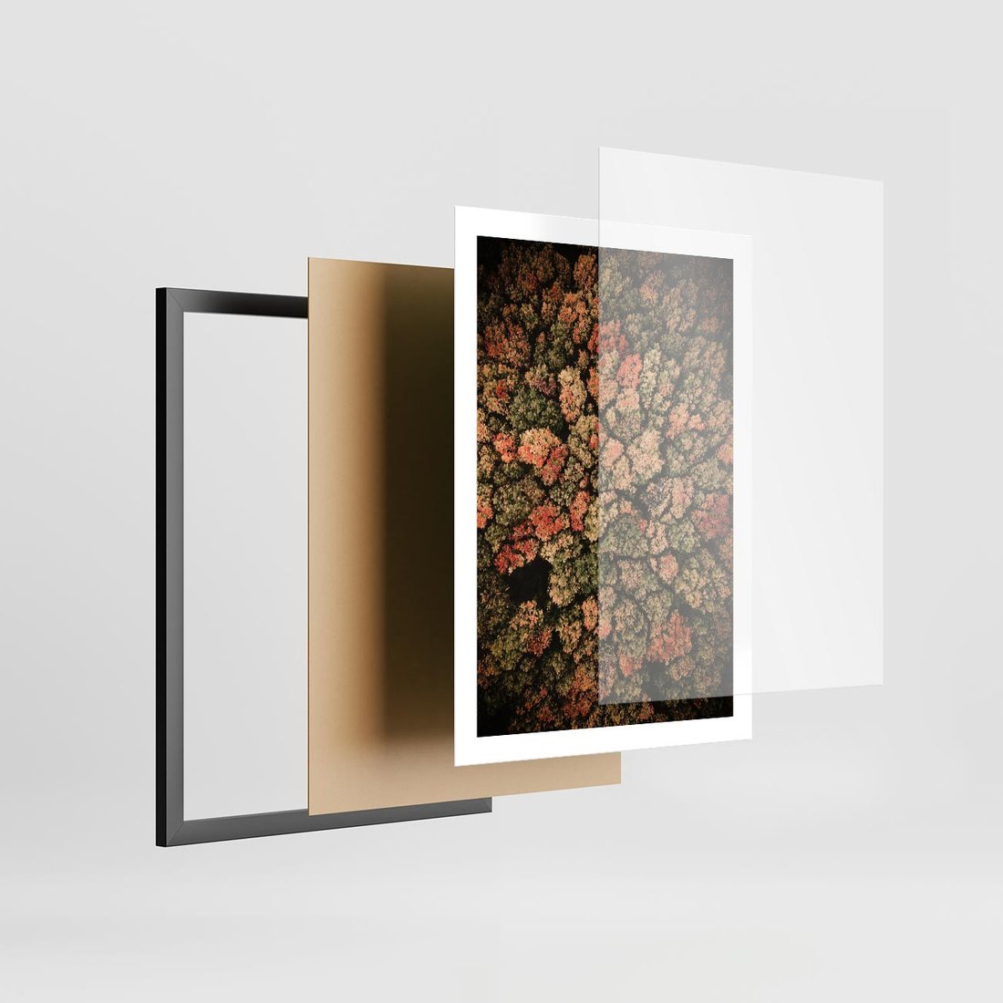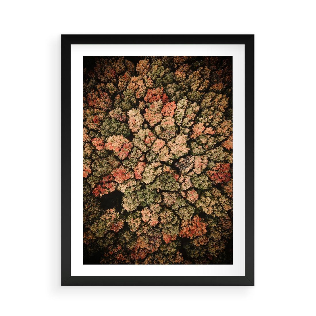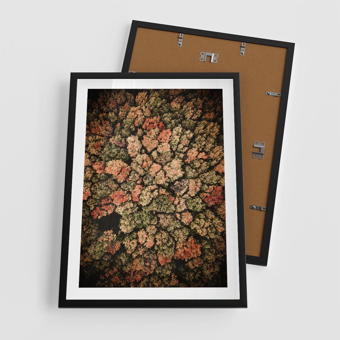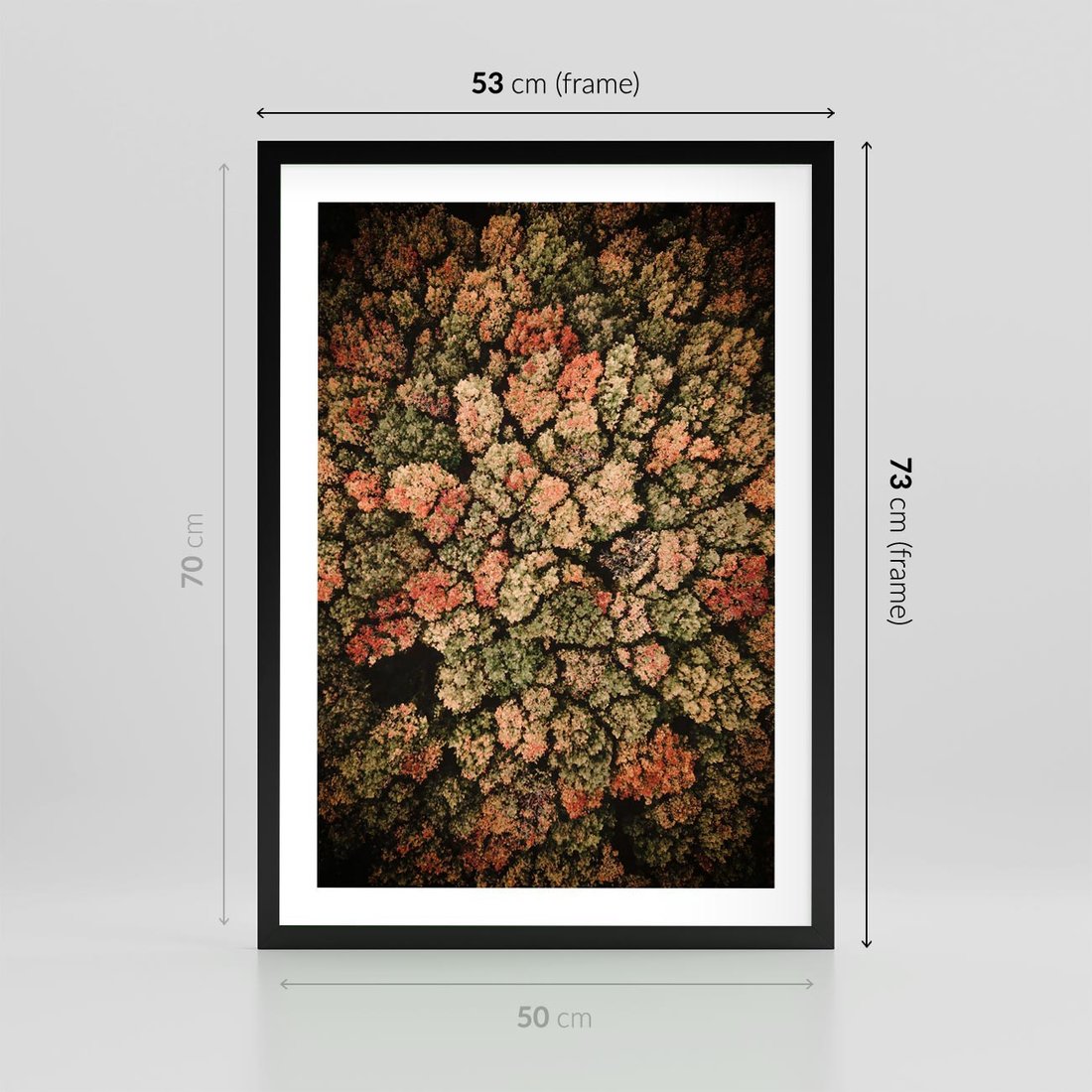 Plakat w ramie 50x70 - Jesień z Lotu Ptaka: Malowniczy Las - las jesienią z lotu ptaka - rama czarna