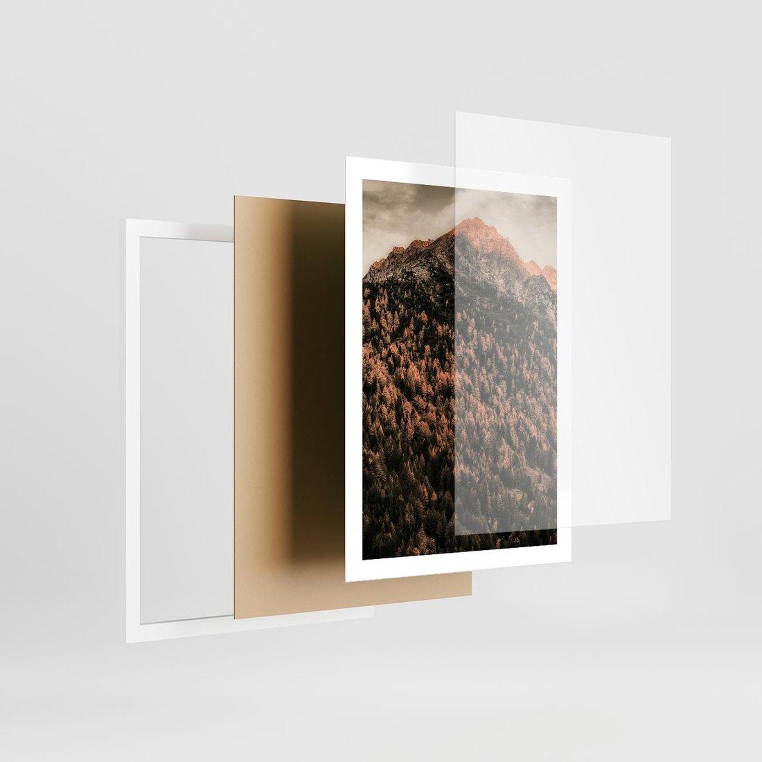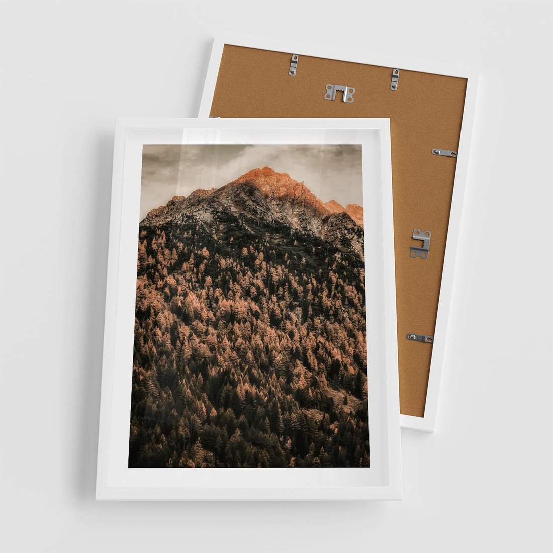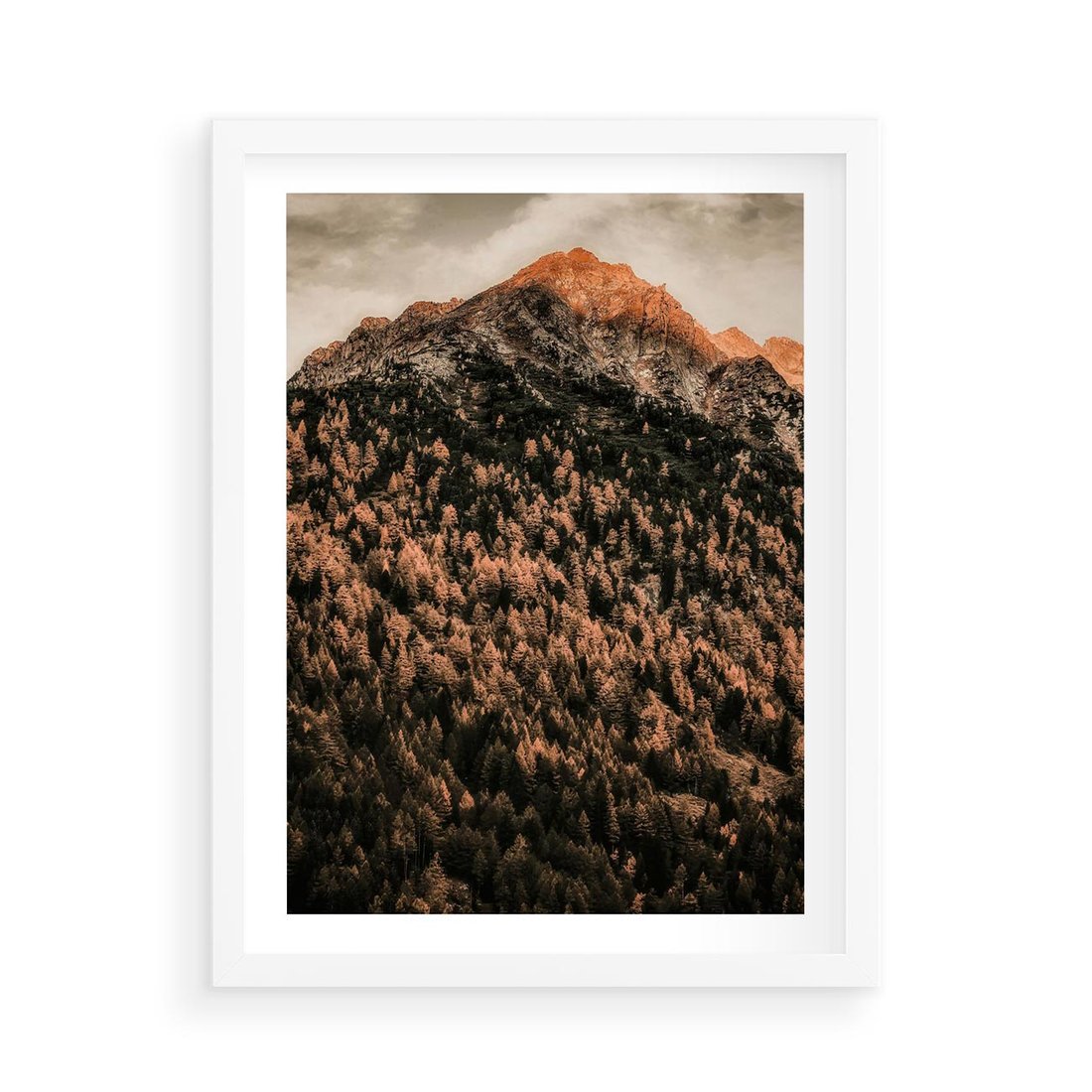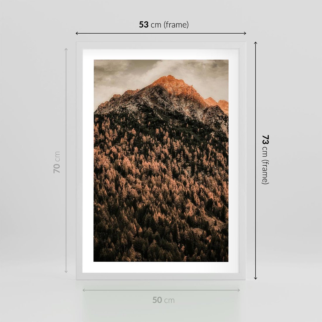 Plakat w ramie 50x70 - Jesienna Godzina w Górach - góry, las w górach - rama biała