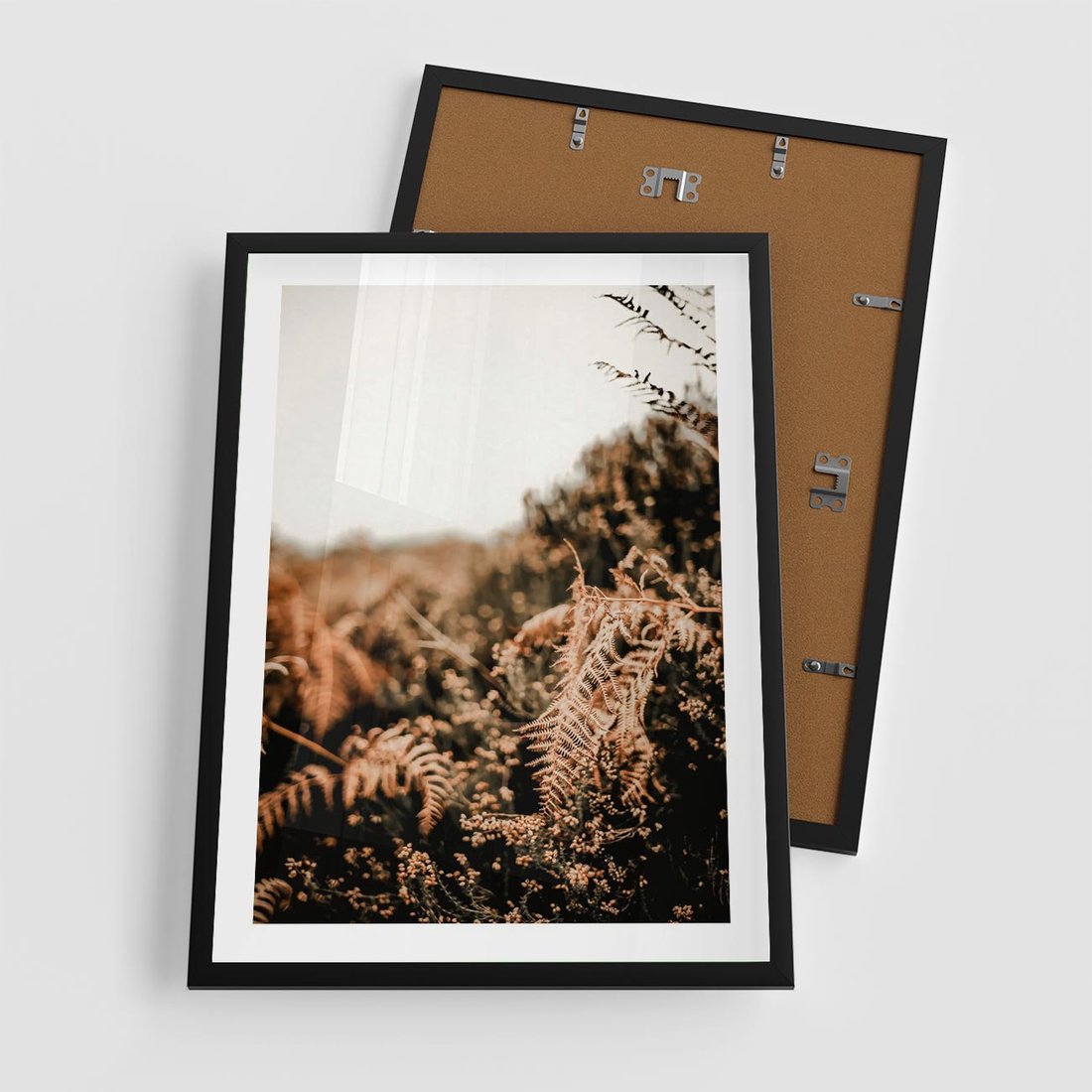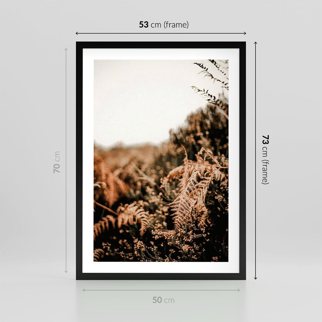 Plakat w ramie 50x70 - Jesienna Harmonia - suche paprocie, jesienny krajobraz - rama czarna