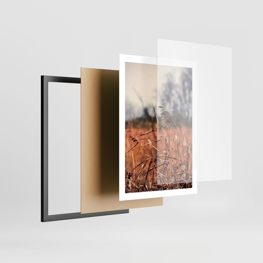 Plakat w ramie 50x70 - Jesienna Melancholia - suche trawy, jesień - rama czarna