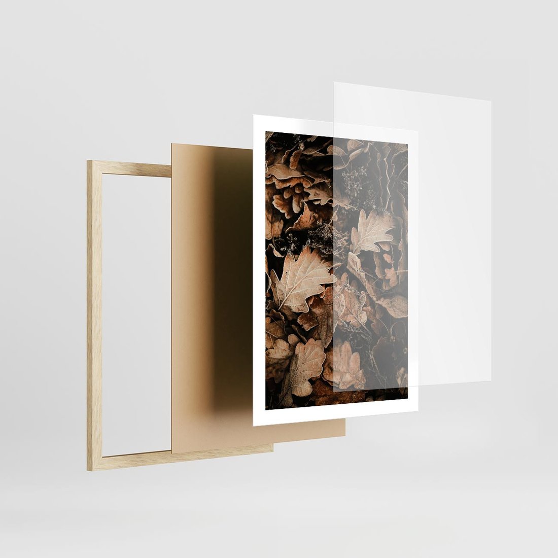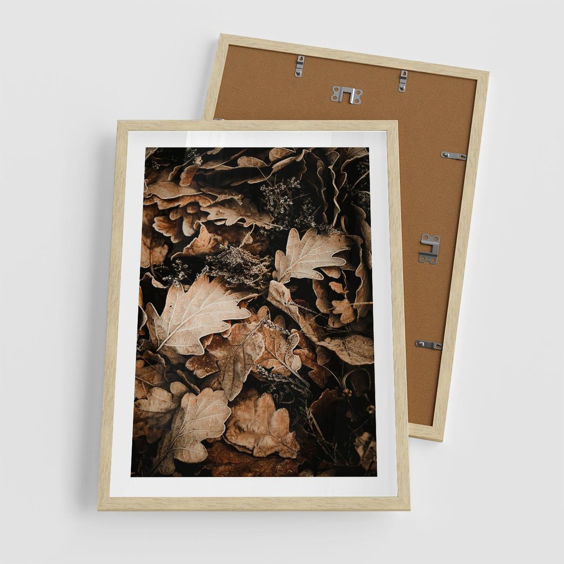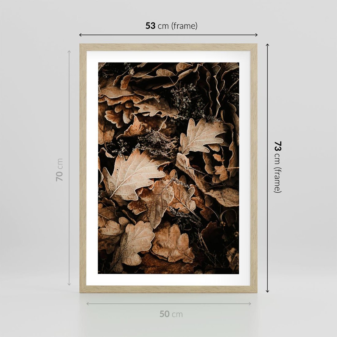 Plakat w ramie 50x70 - Jesienna Melodia: Liście i Szyszki - suche liście, szyszki - rama drewno