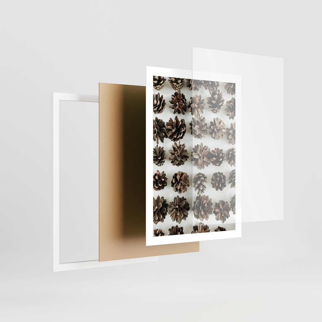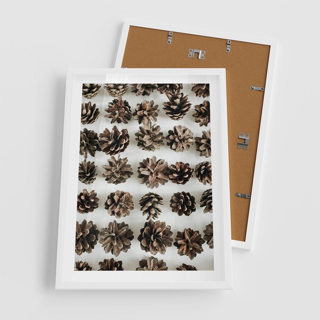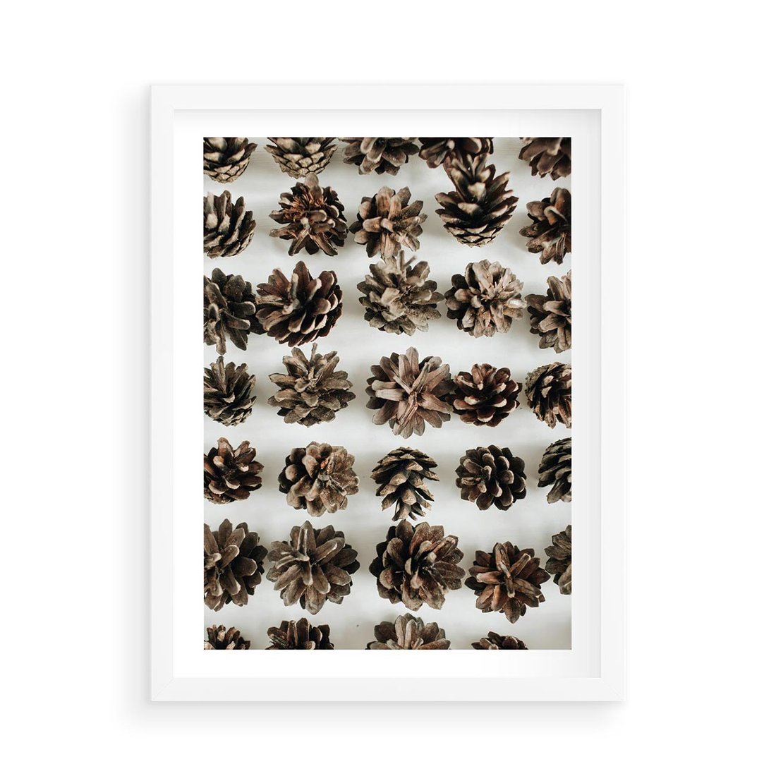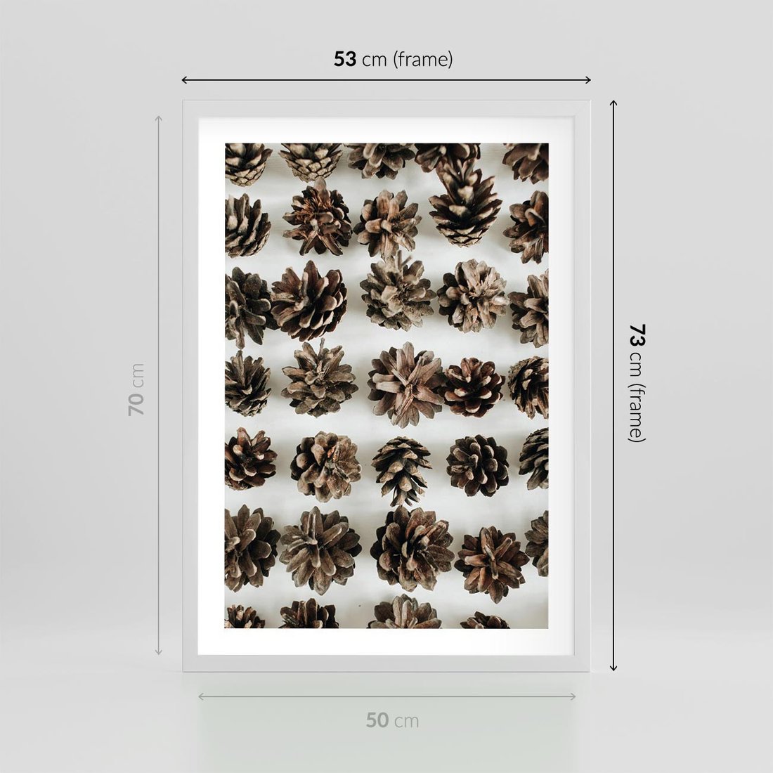 Plakat w ramie 50x70 - Jesienna Tekstura - kompozycja z suchych szyszek, jesienne szyszki - rama biała