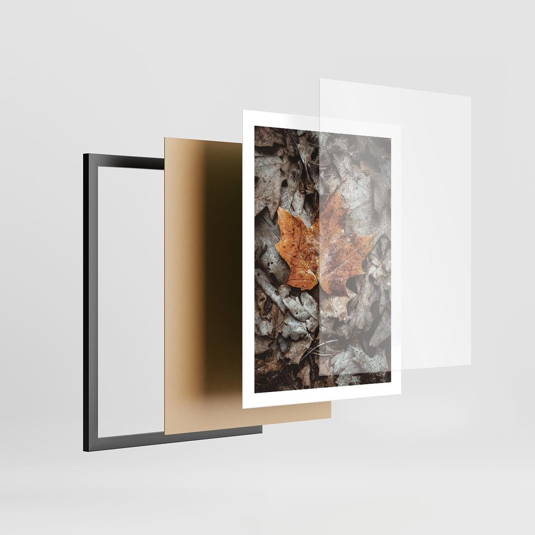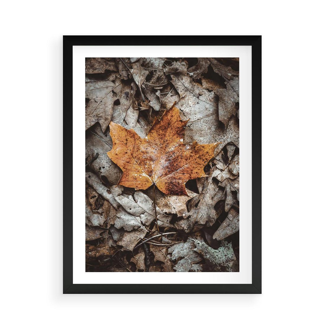 Plakat w ramie 50x70 - Jesienne Czarowanie - suchy liść, żółty - rama czarna