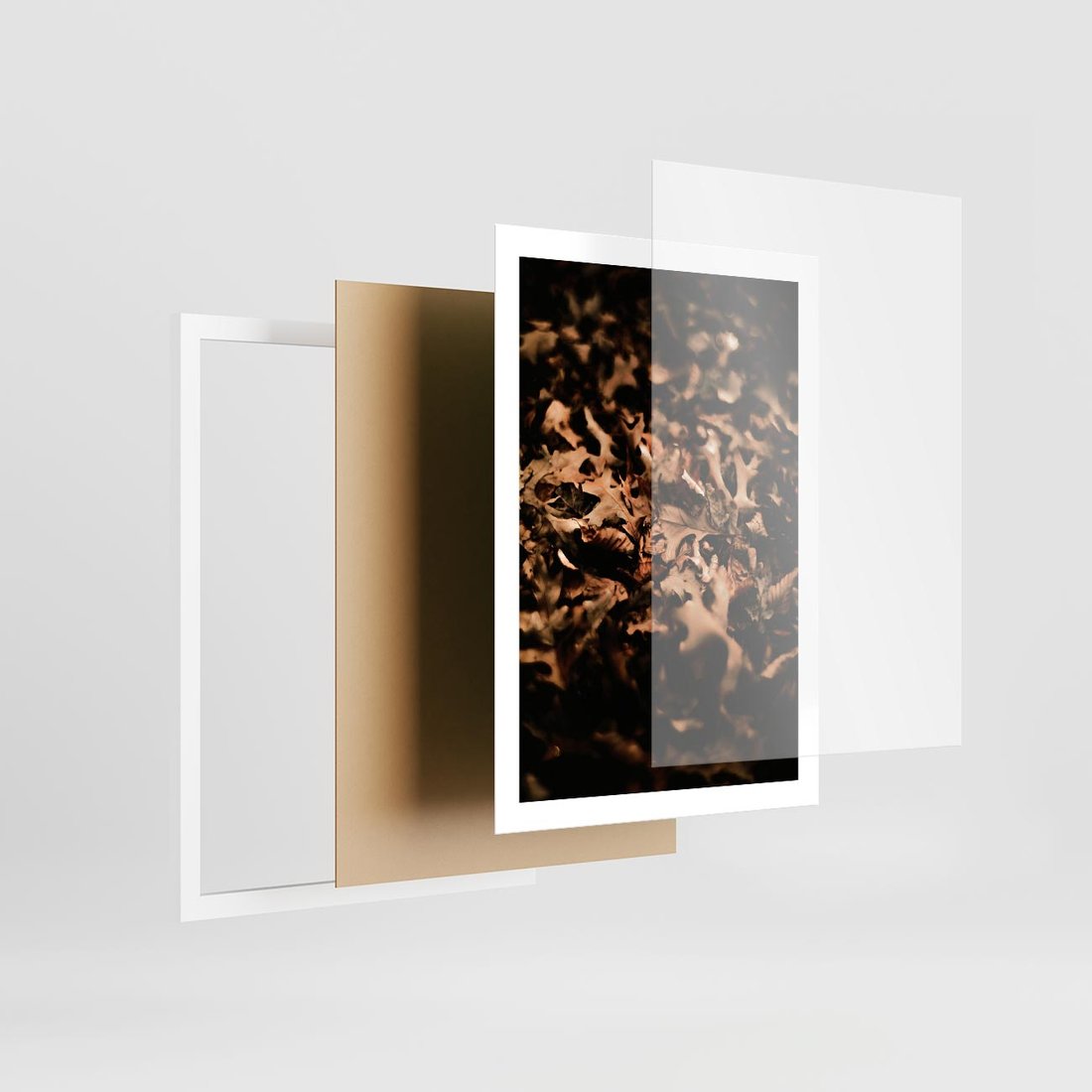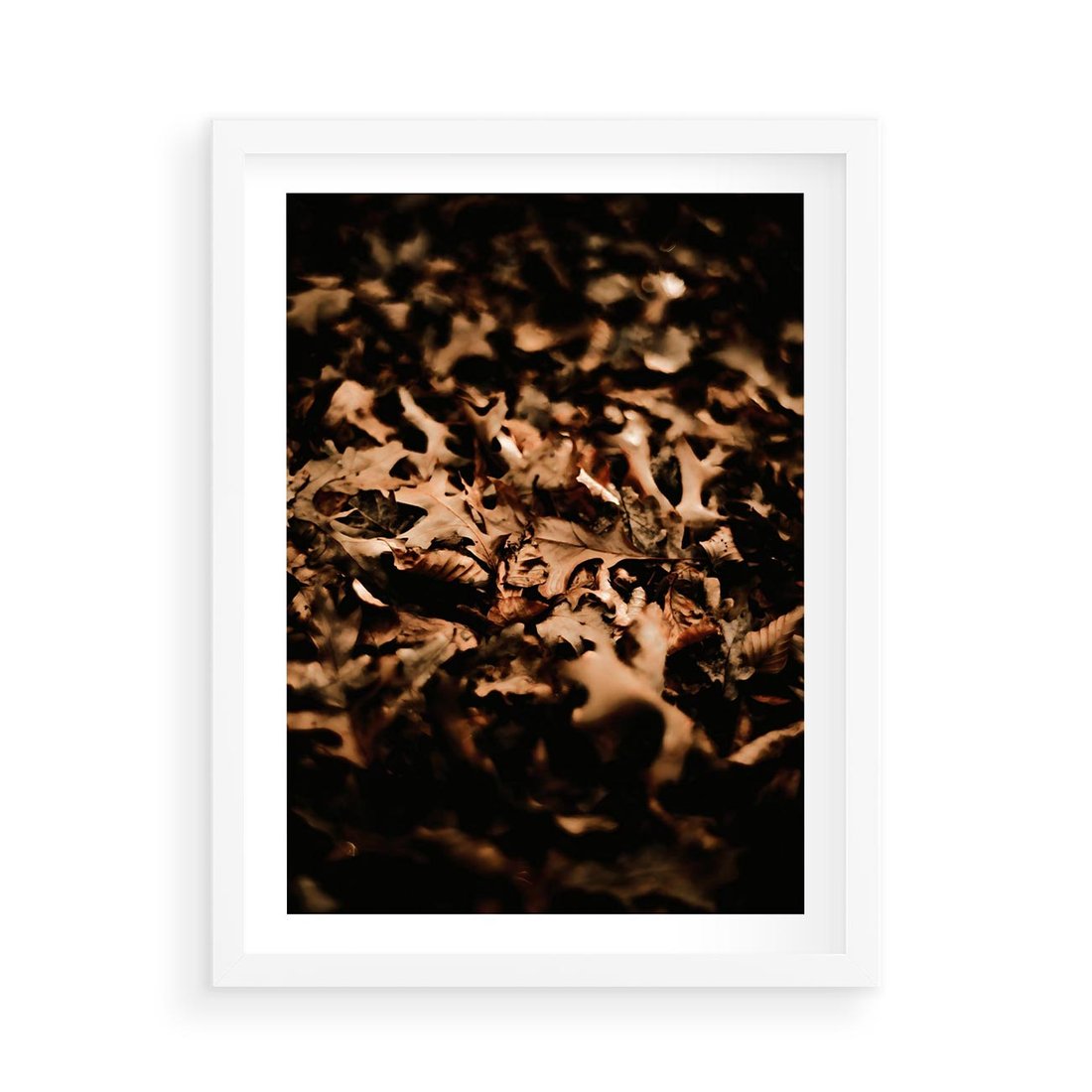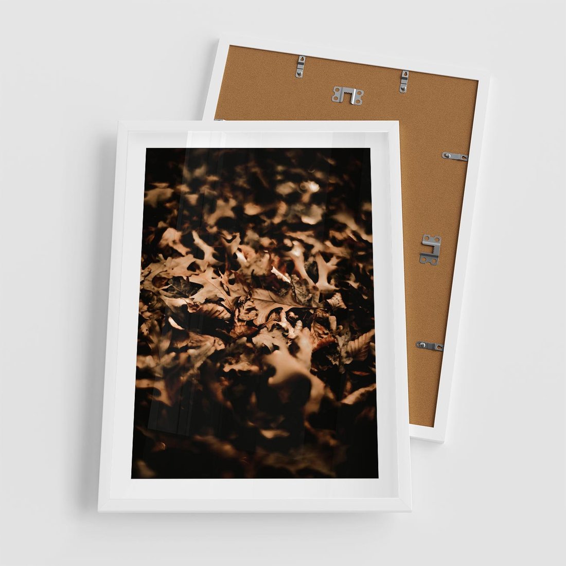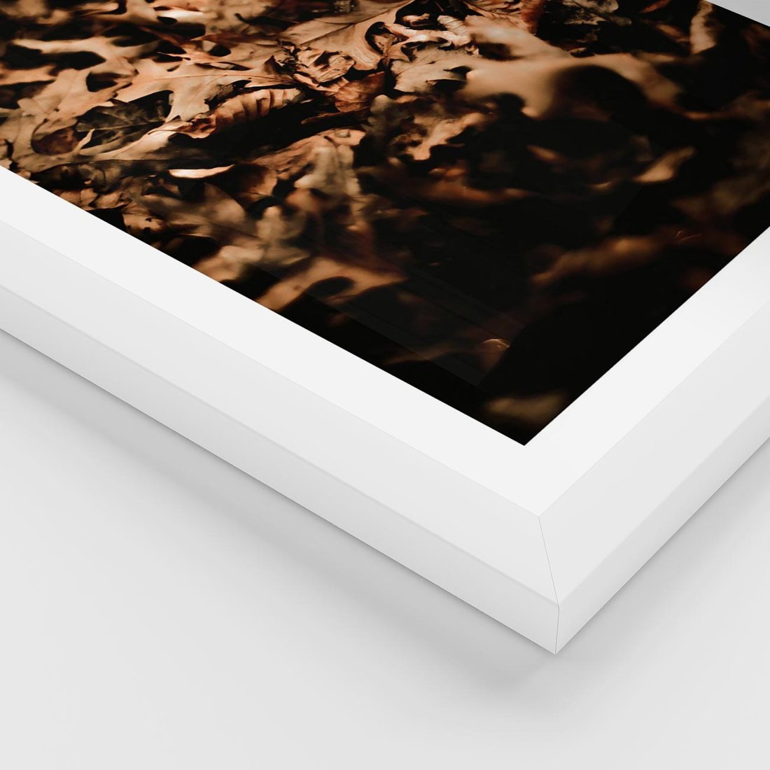 Plakat w ramie 50x70 - Jesienne Liście: Nostalgiczna Kolorystyka - suche liście, jesień - rama biała