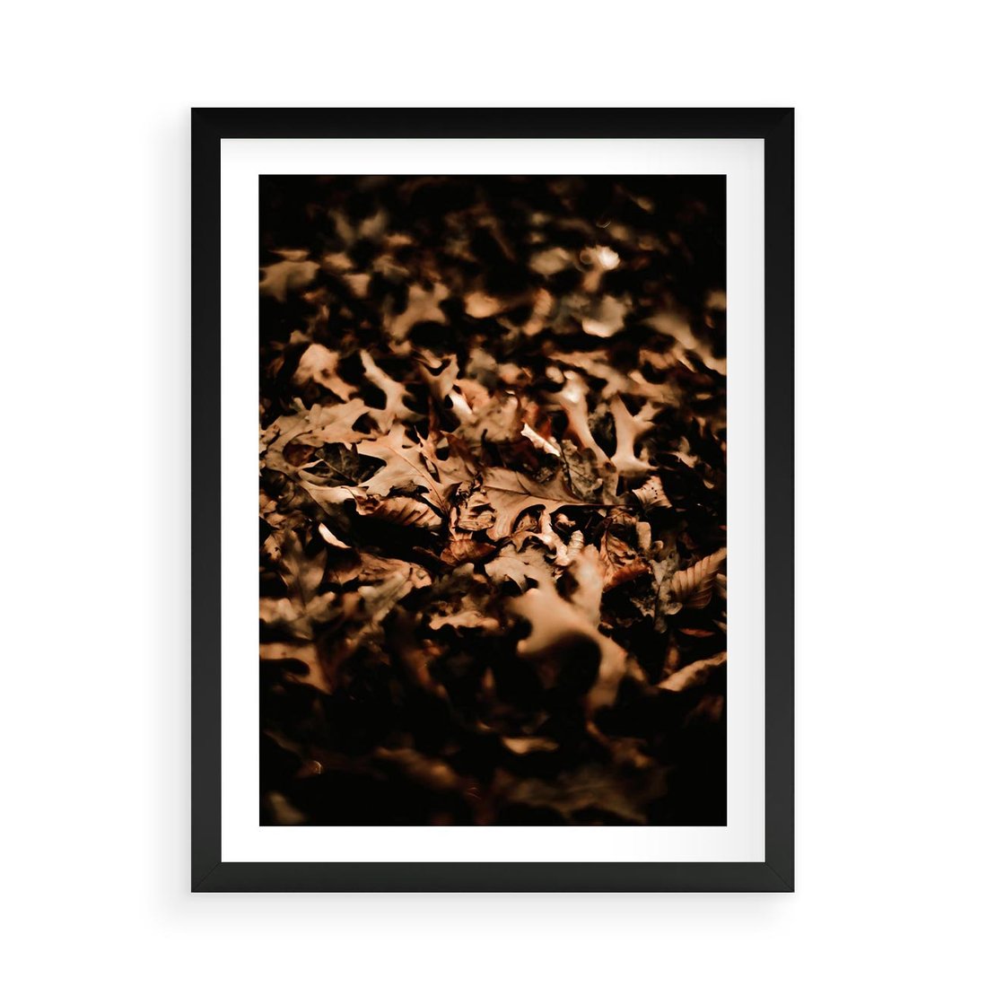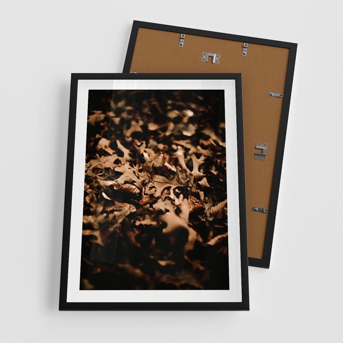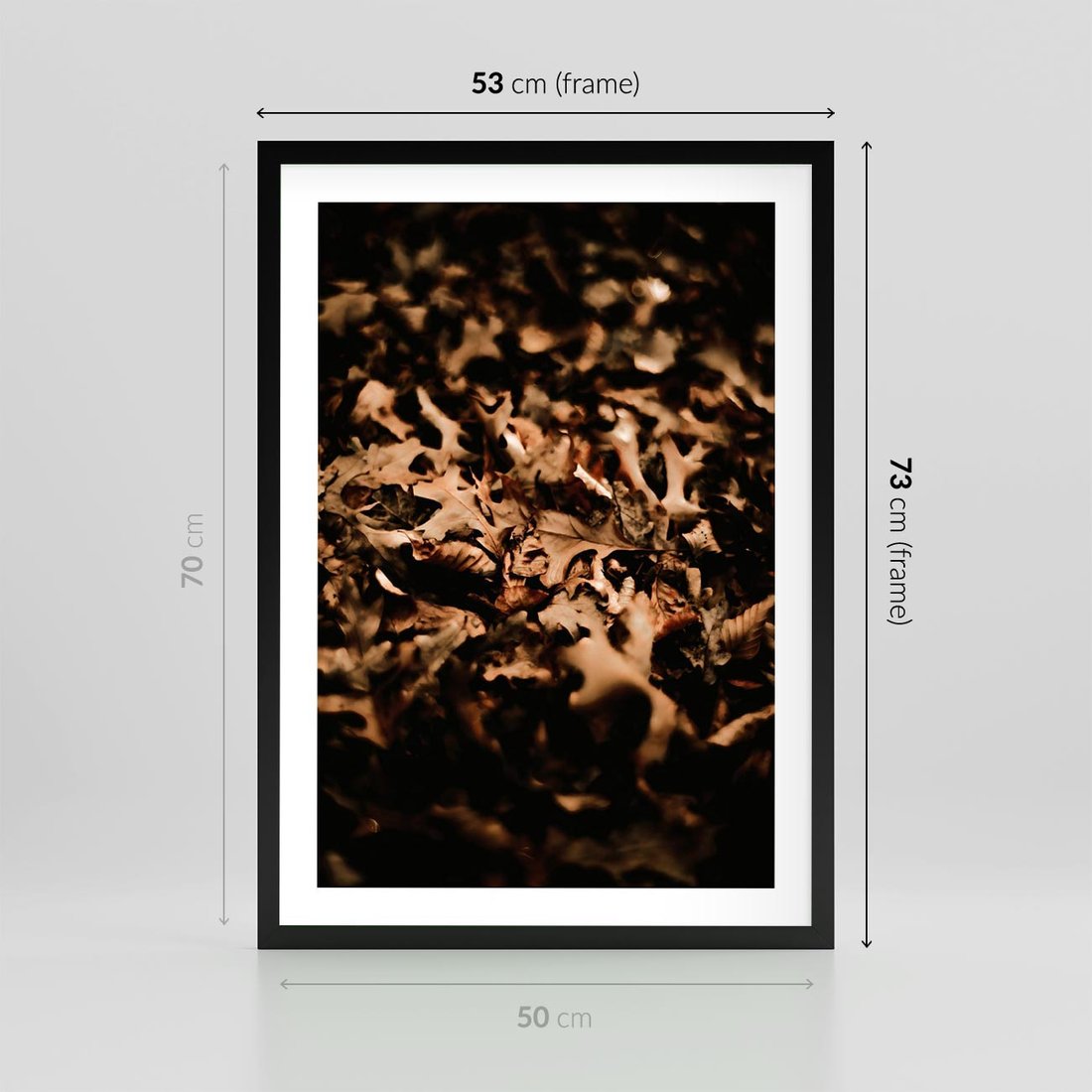 Plakat w ramie 50x70 - Jesienne Liście: Nostalgiczna Kolorystyka - suche liście, jesień - rama czarna