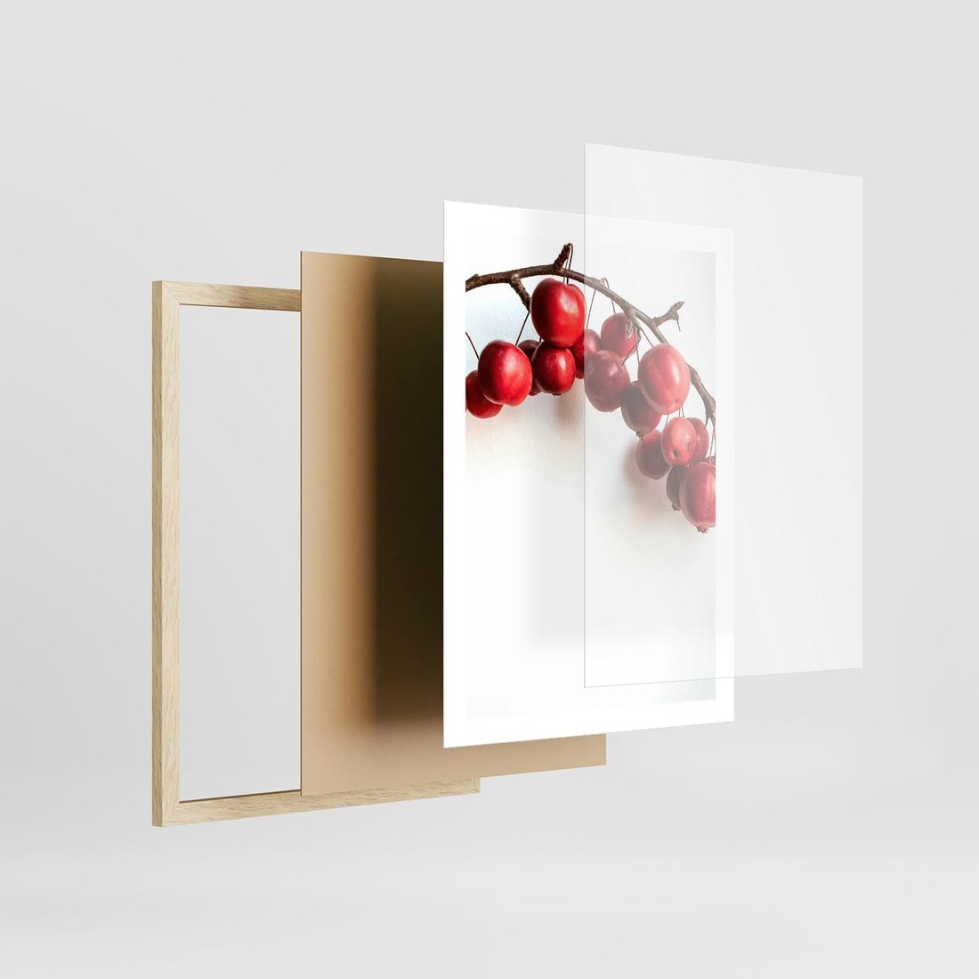 Plakat w ramie 50x70 - Jesienne Owoce - jarzębina, czerwone owoce - rama drewno