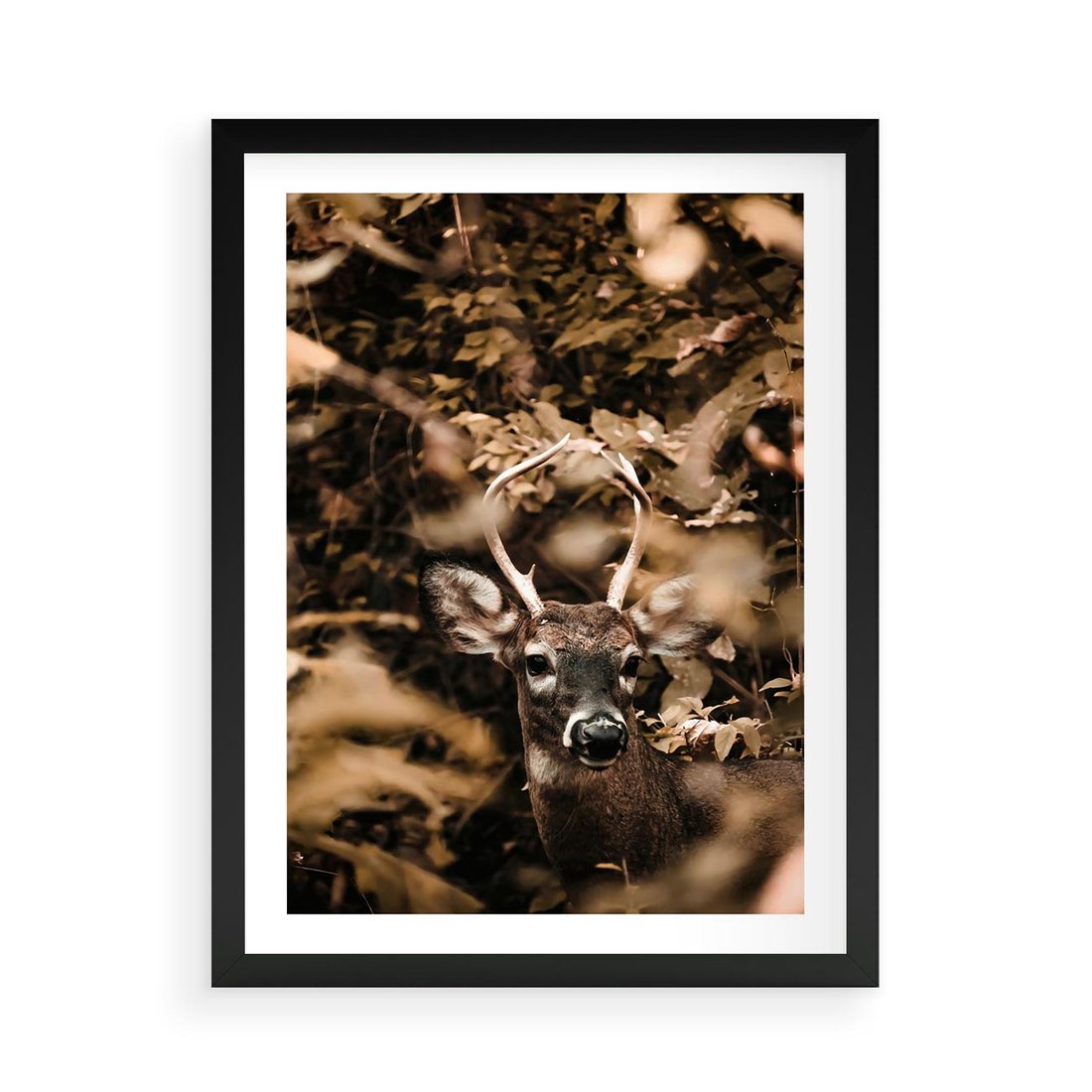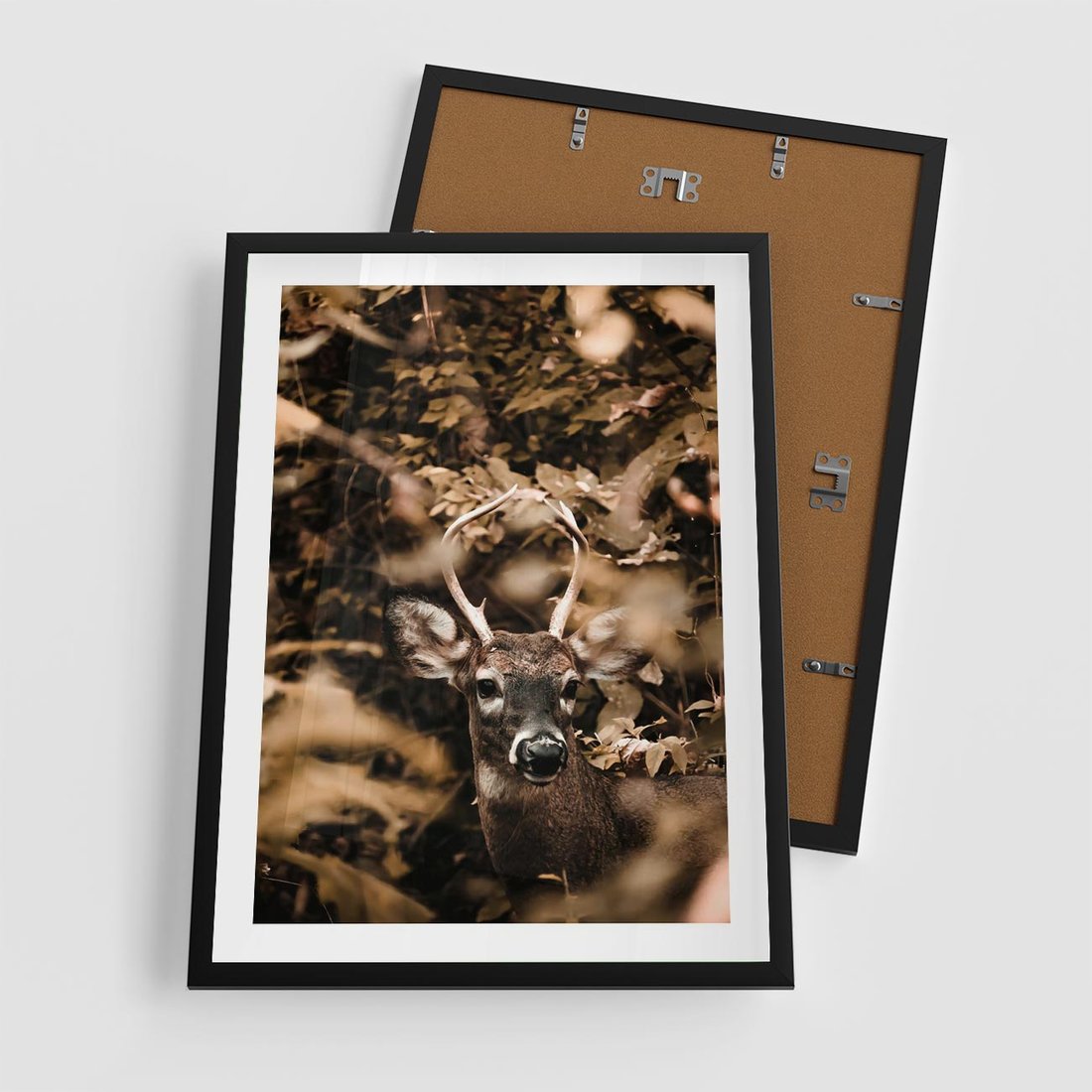 Plakat w ramie 50x70 - Jesienny Jeleń w Lesie - jeleń, w lesie - rama czarna