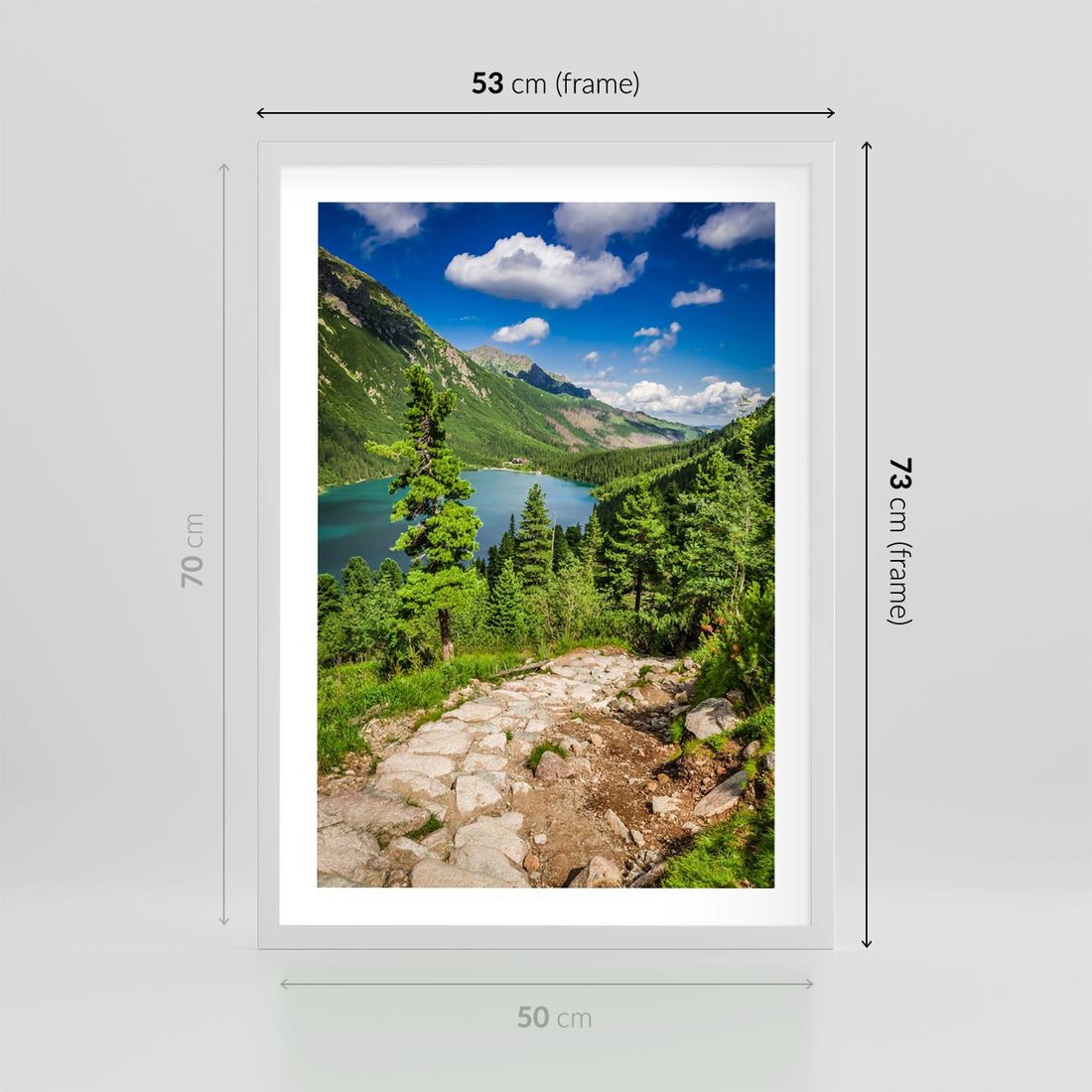 Plakat w ramie 50x70 - Jezioro górskie: harmonia natury - jezioro, góry - rama biała