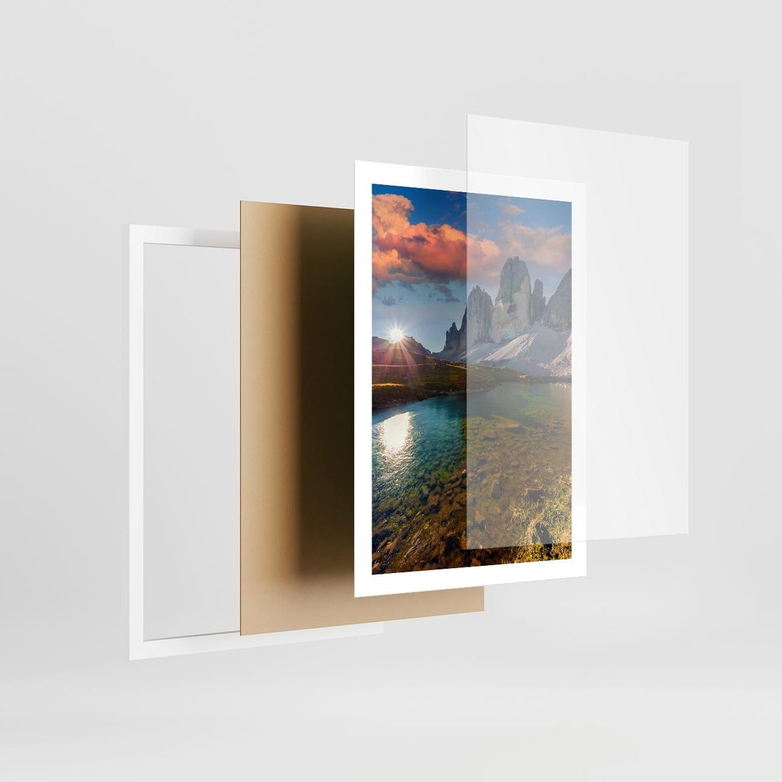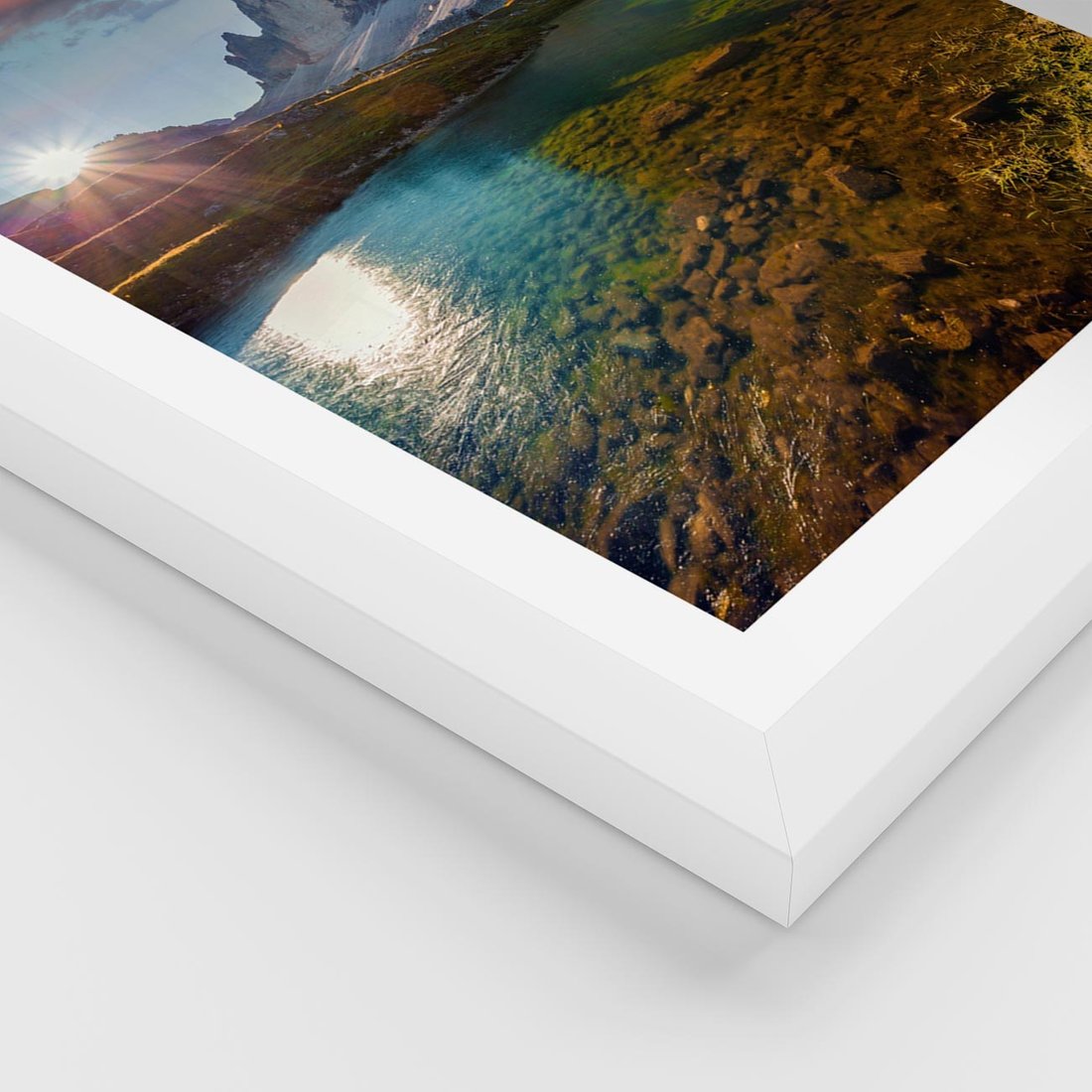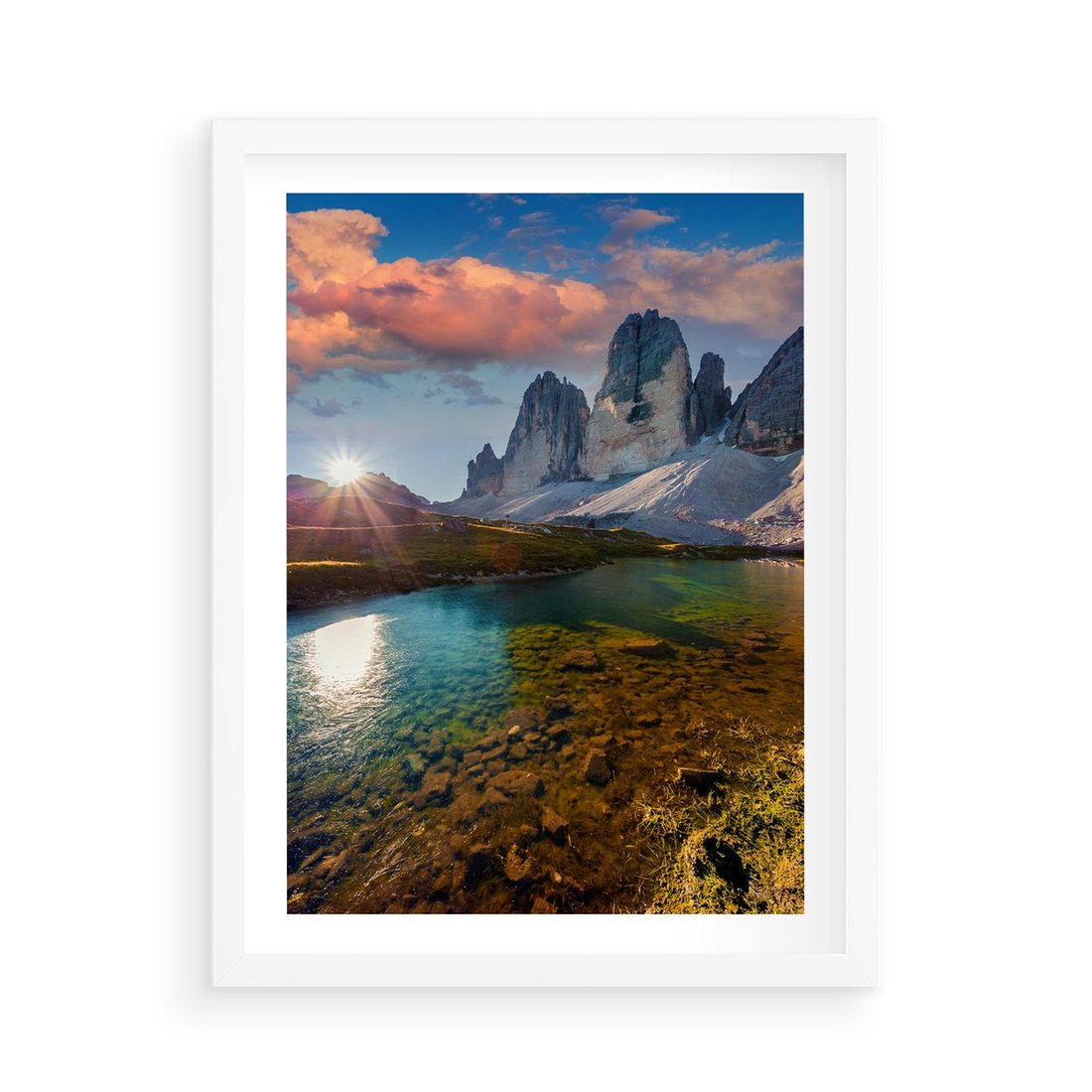 Plakat w ramie 50x70 - Jezioro wśród majestatycznych gór - jezioro, góry - rama biała