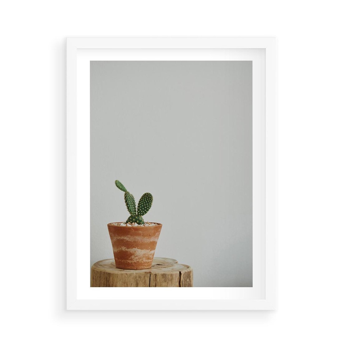 Plakat w ramie 50x70 - Kaktus w Doniczce - minimalizm, kaktur w doniczce - rama biała