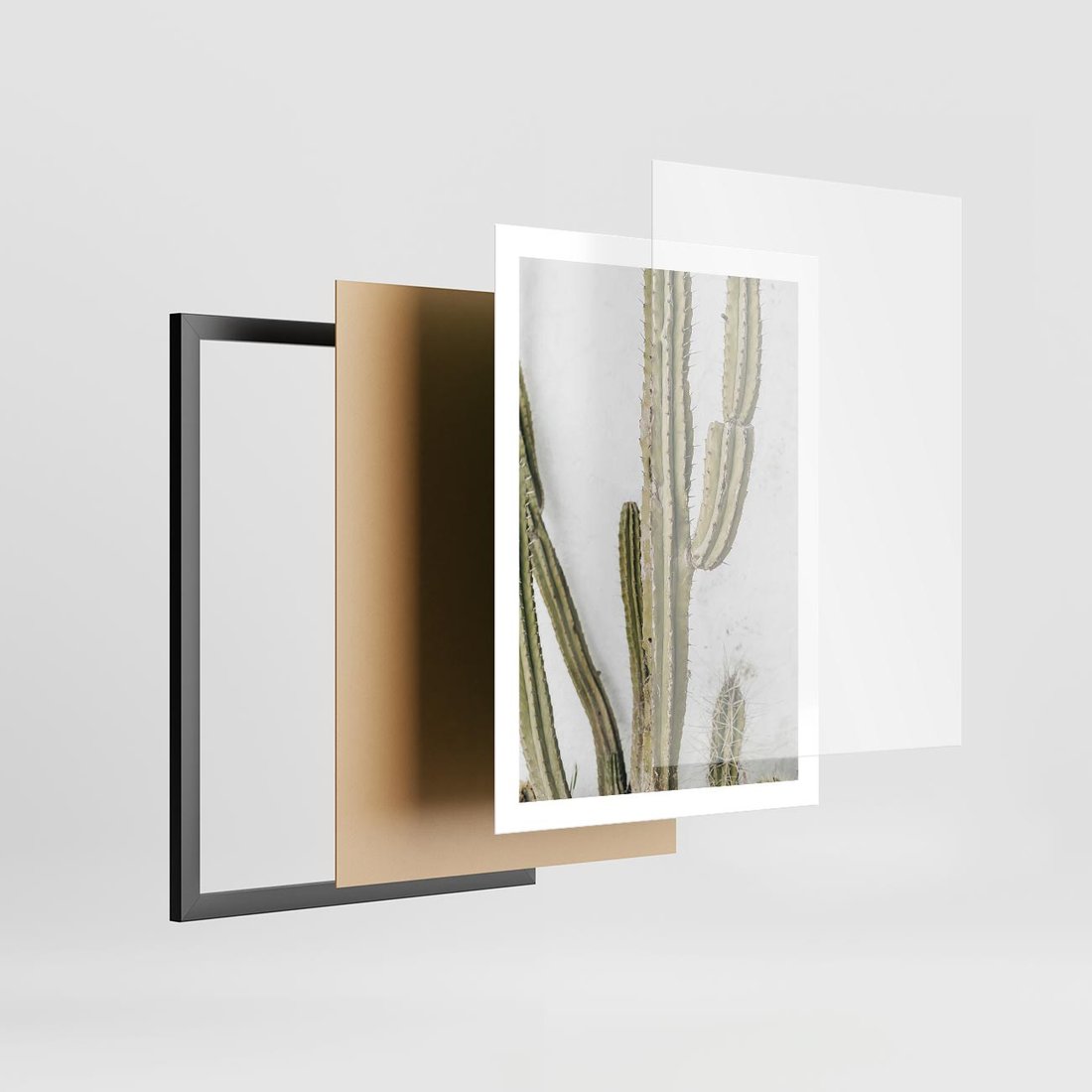 Obraz przedstawia minimalistyczną aranżację z kaktusem jako głównym elementem. Ta kompozycja wpisuje się w styl boho i minimalistyczne wnętrza, dodając im subtelnego egzotycznego uroku.
