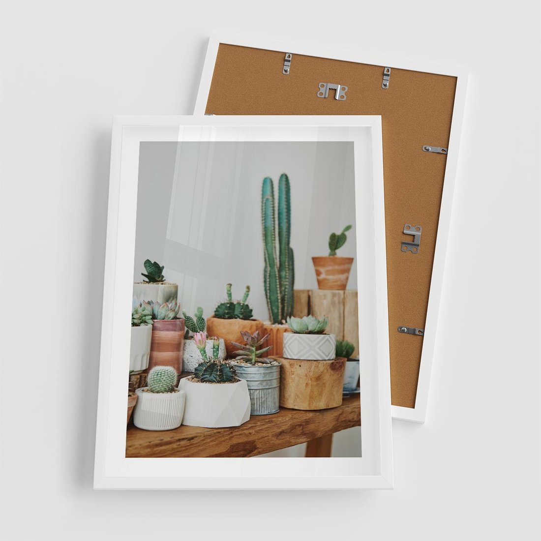 Plakat w ramie 50x70 - Kaktusowa Galeria w Doniczkach - kaktusy w doniczkach, fotografia - rama biała
