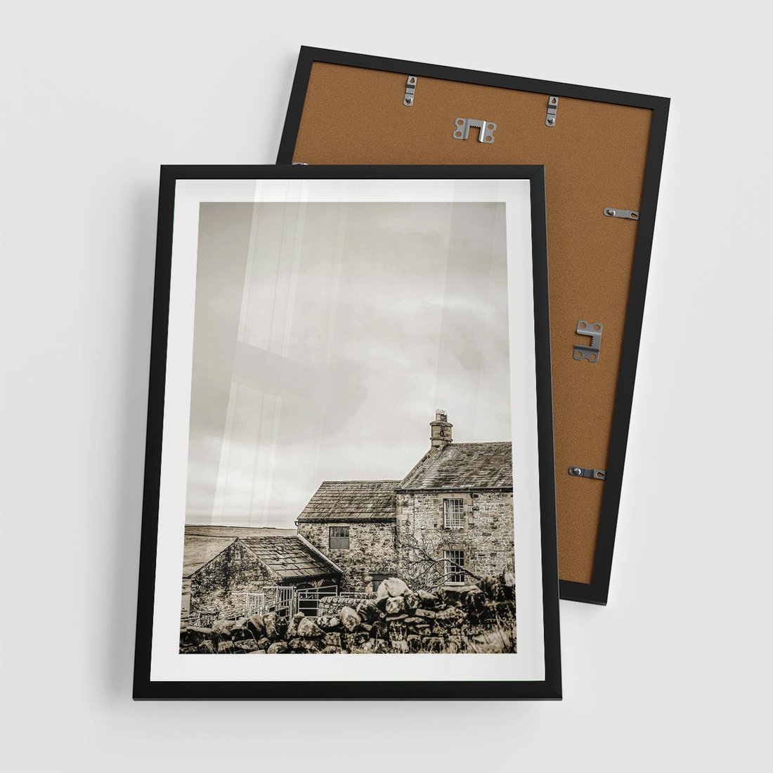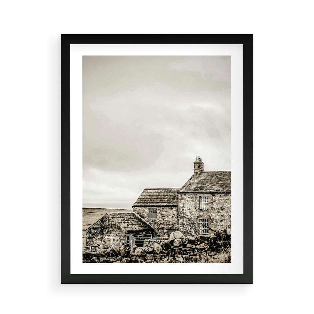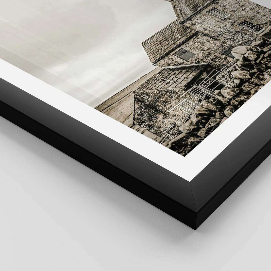 Plakat w ramie 50x70 - Kamienny Dom w Odcieniach Sepii - stary kamienny dom, odcienie sepii - rama czarna