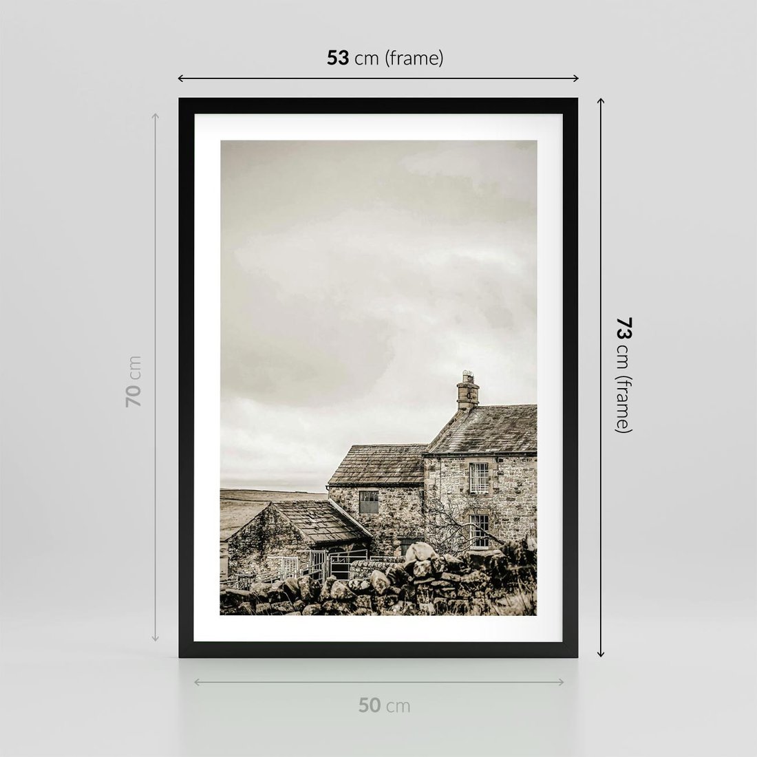 - Plakat w ramie 50x70 - Kamienny Dom w Odcieniach Sepii