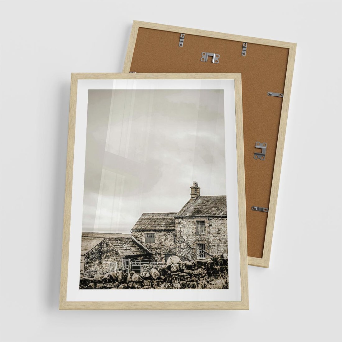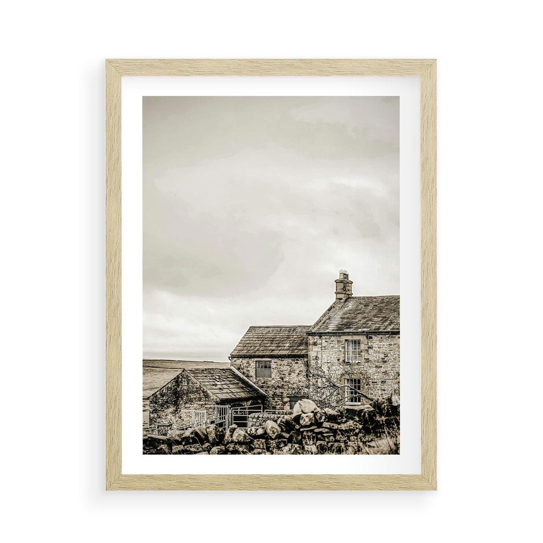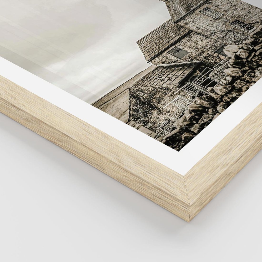 Plakat w ramie 50x70 - Kamienny Dom w Odcieniach Sepii - stary kamienny dom, odcienie sepii - rama drewno