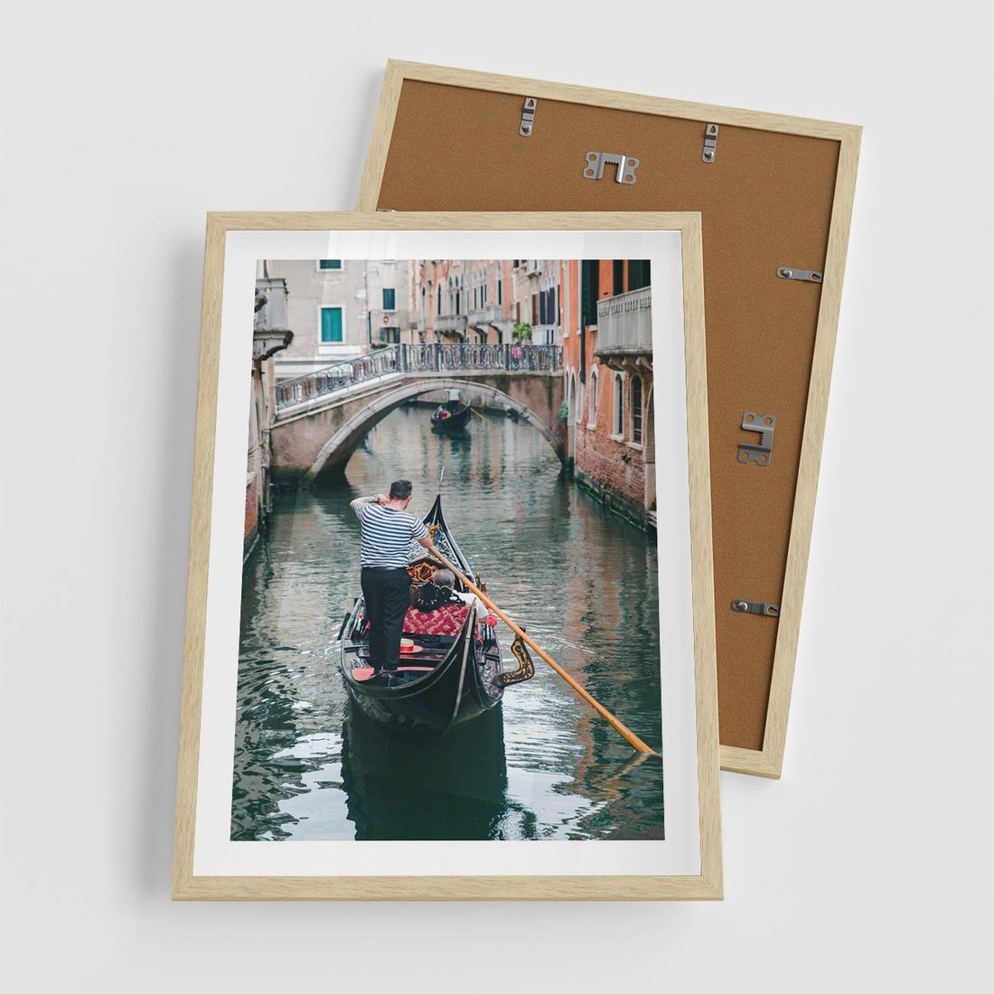 Plakat w ramie 50x70 - Kanały Wenecji - gondola, Wenecja - rama drewno