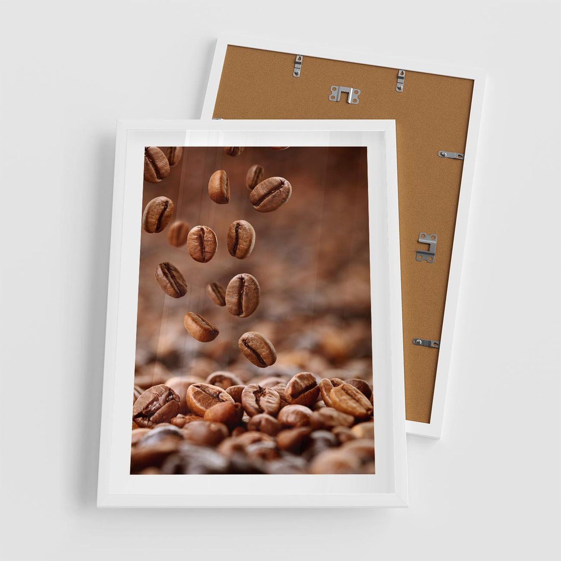 Plakat w ramie 50x70 - Kawiarniana atmosfera kawy - kawa, kawiarnia - rama biała
