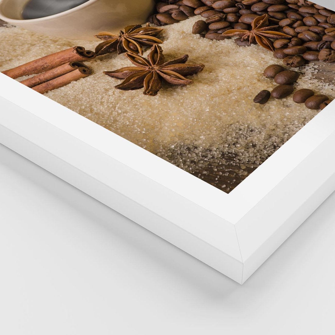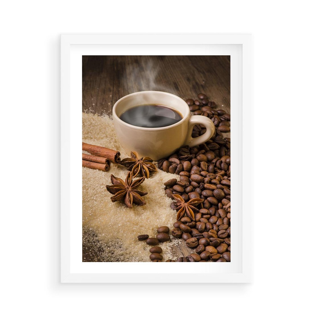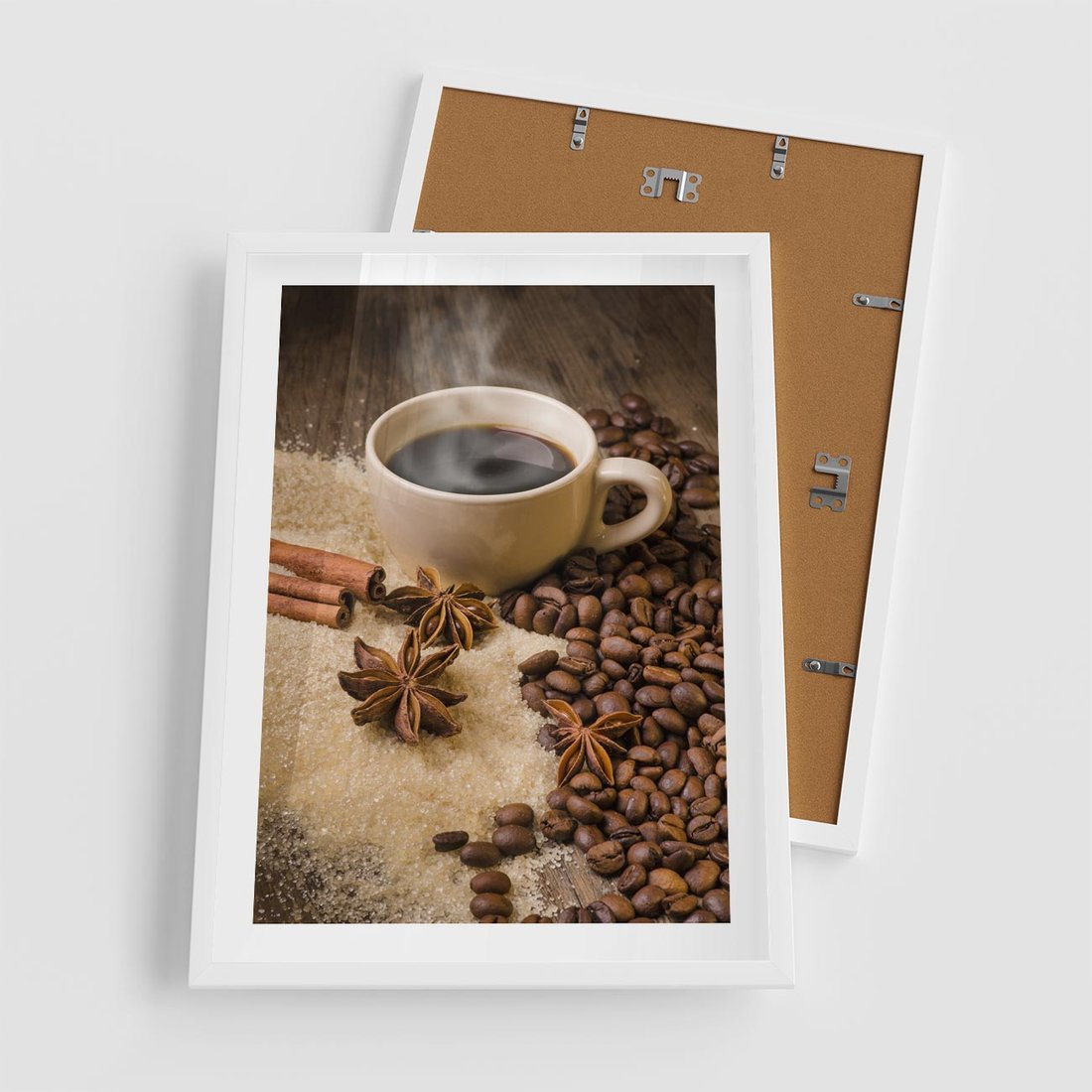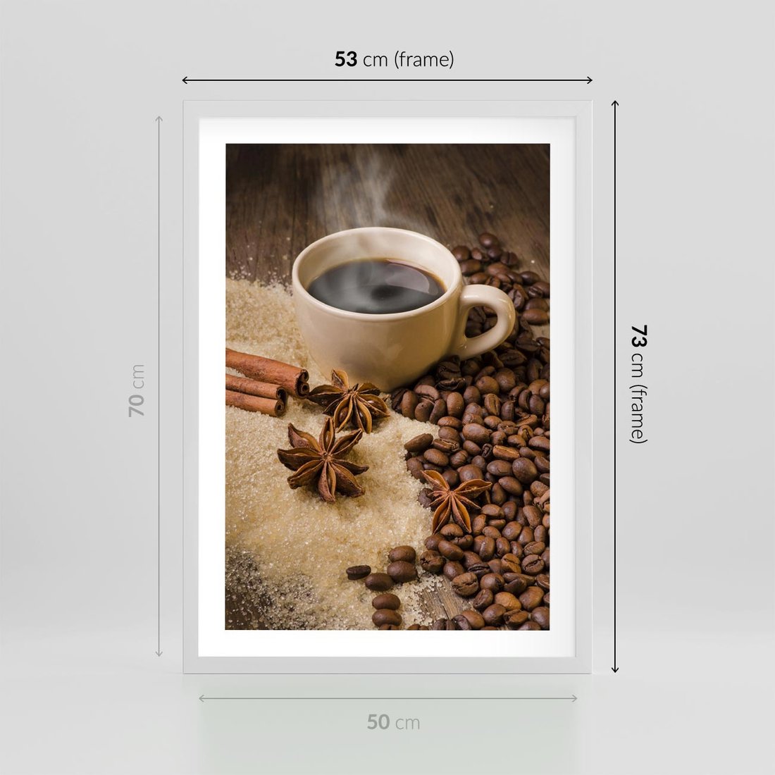 Plakat w ramie 50x70 - Kawowa filiżanka pełna aromatu - kawa, filiżanka - rama biała