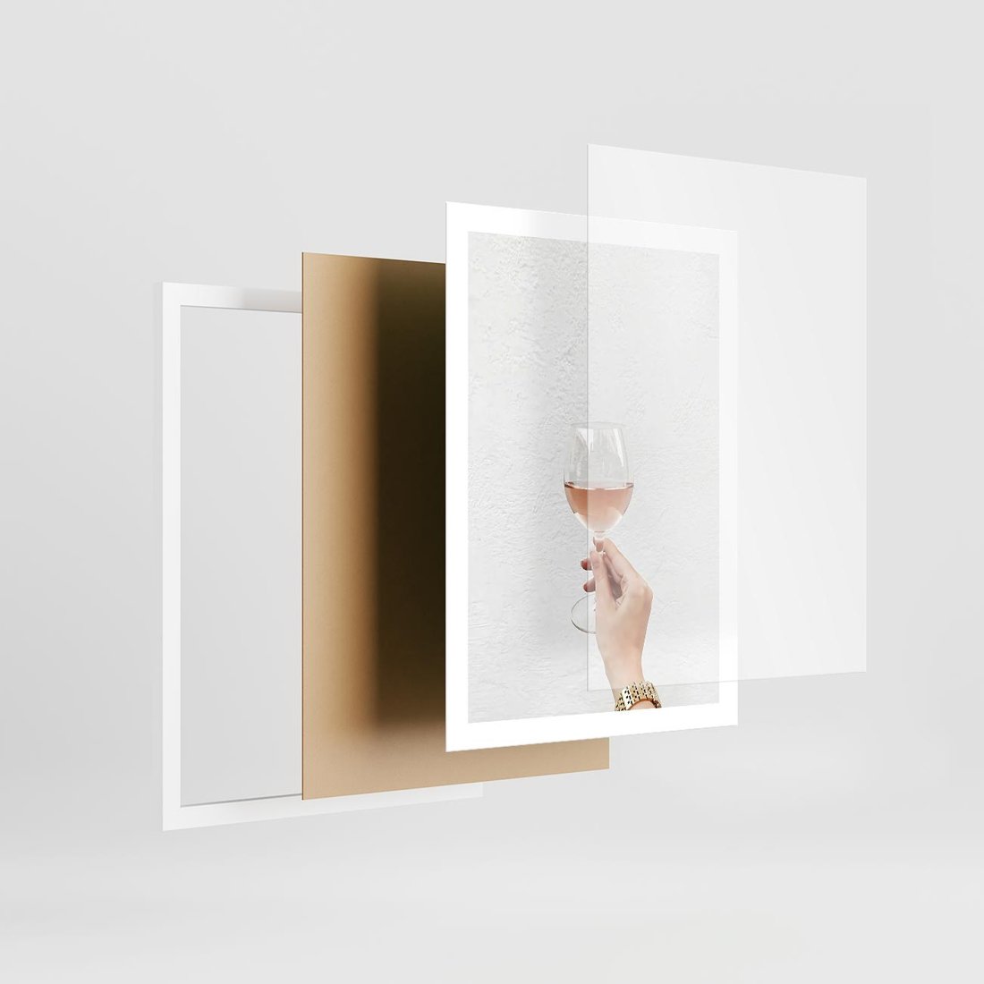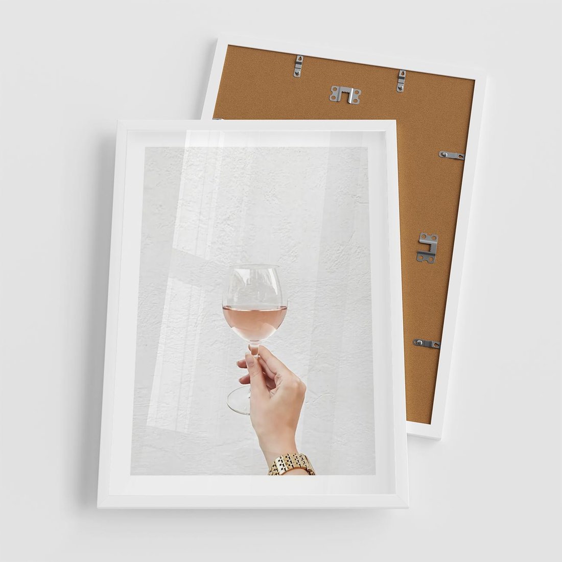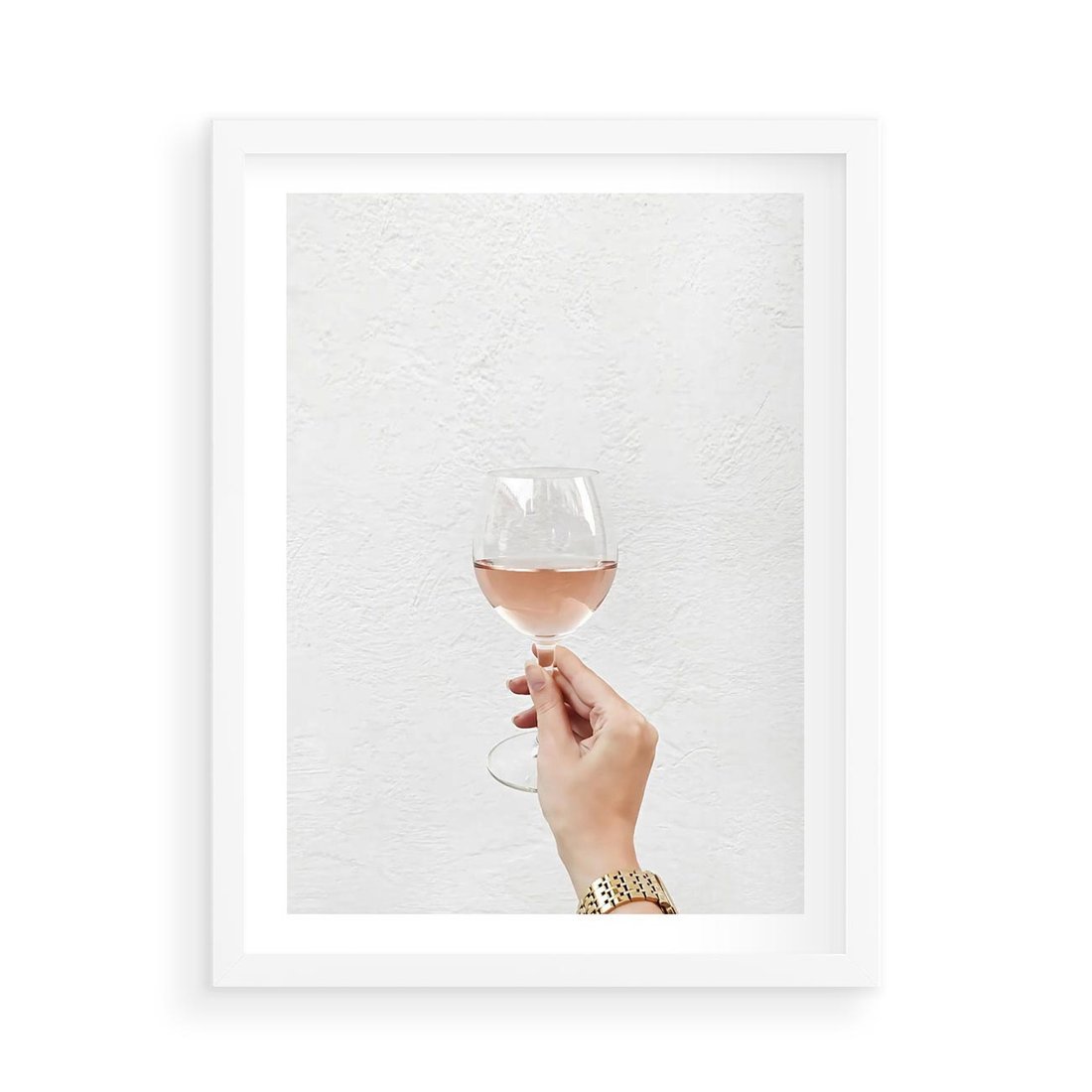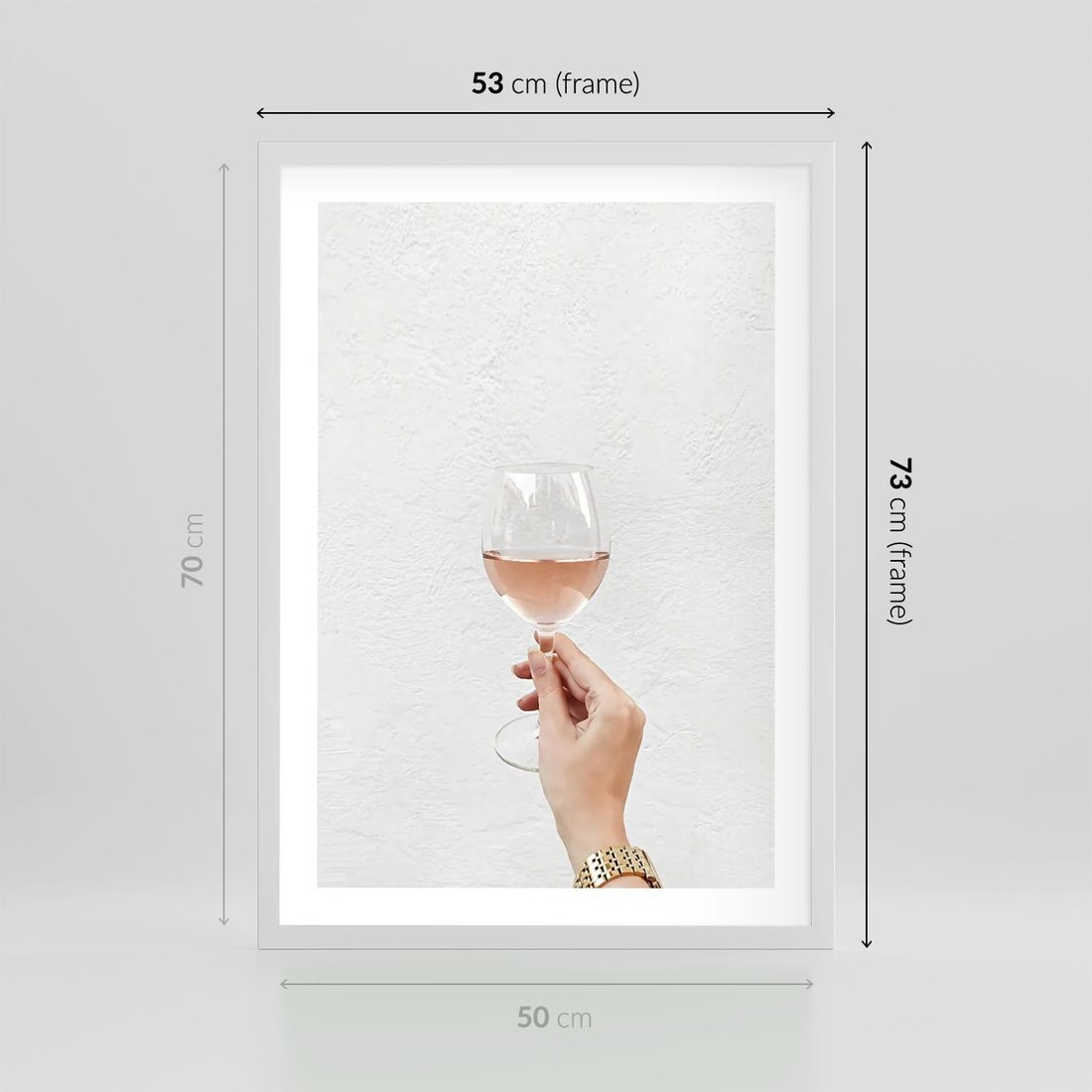 Plakat w ramie 50x70 - Kobieca Dłoń i Różowe Wino - kieliszek różowego wina, kobieca dłoń - rama biała