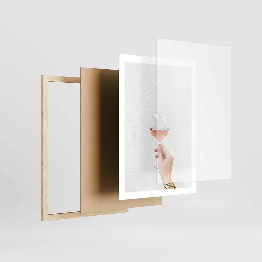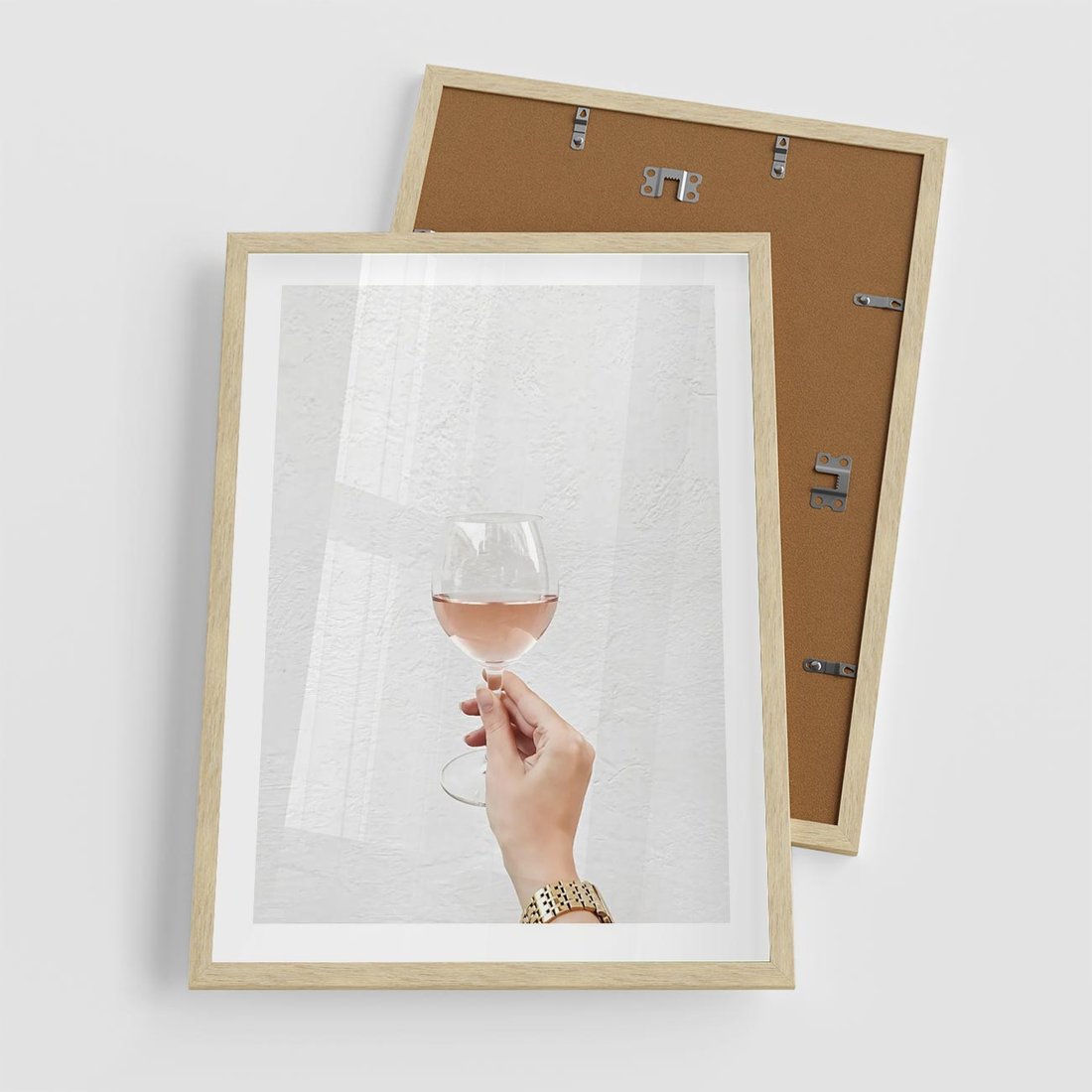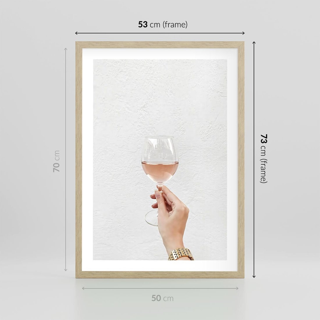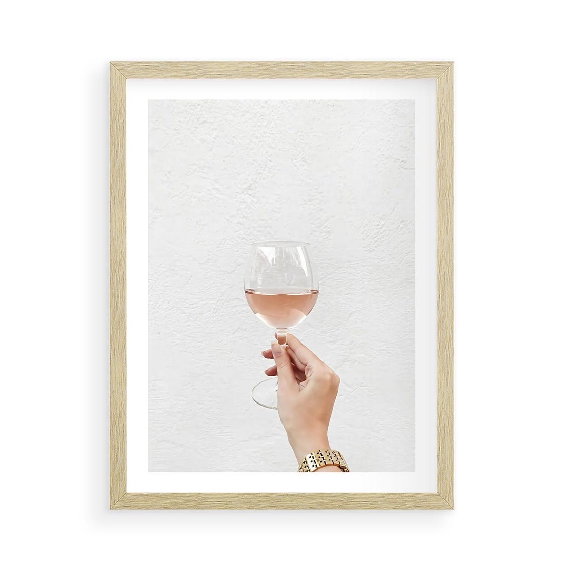 Plakat w ramie 50x70 - Kobieca Dłoń i Różowe Wino - kieliszek różowego wina, kobieca dłoń - rama drewno