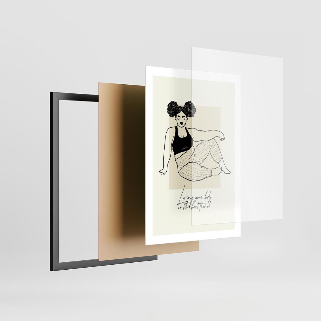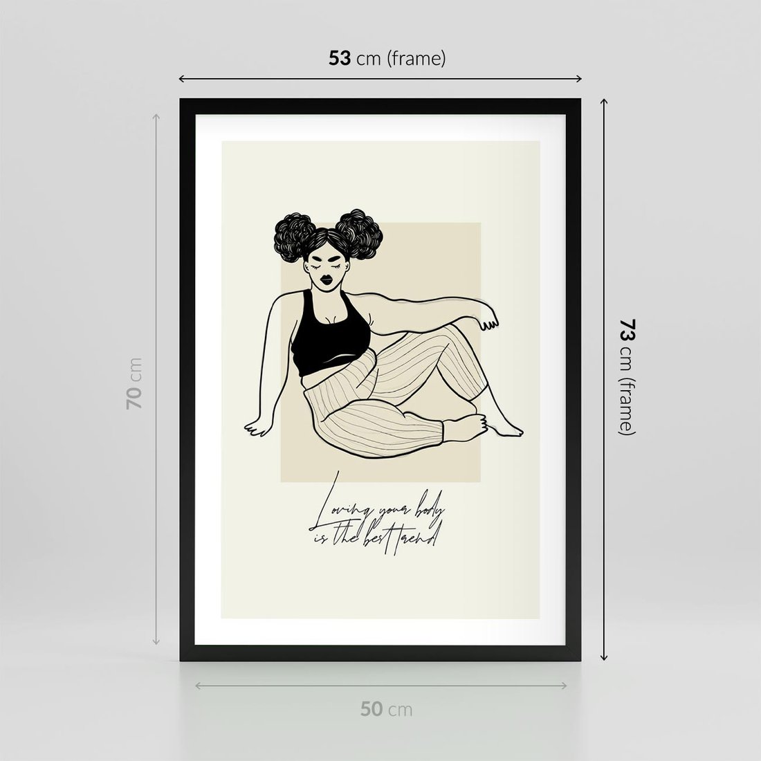 Ten nowoczesny plakat ukazuje kobietę i dziewczynę, oddając piękno różnorodności. Wraz z przekazem samoakceptacji i body positive, sztuka ta inspiruje do kochania i celebracji własnej skóry.