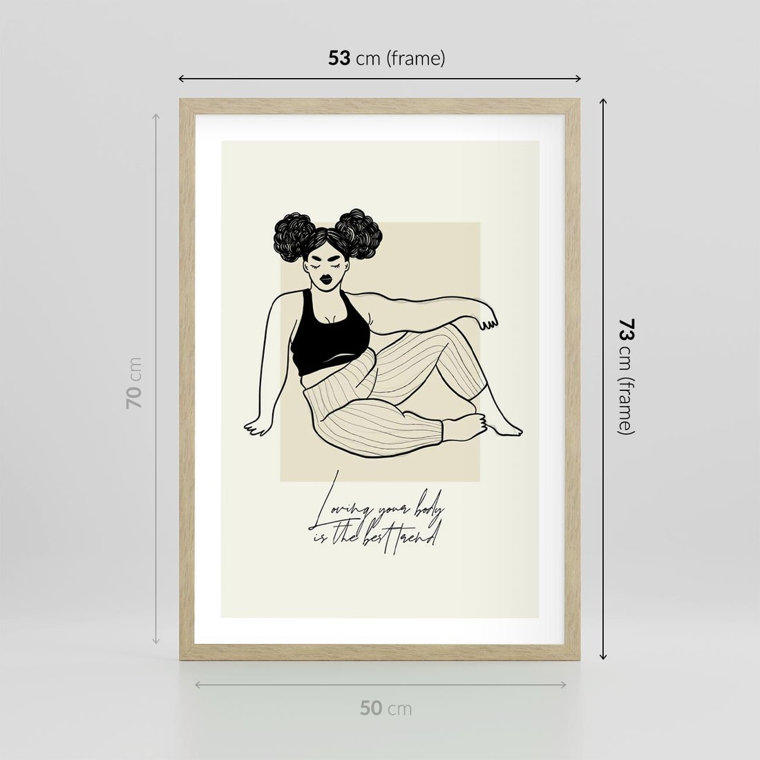 Ten nowoczesny plakat ukazuje kobietę i dziewczynę, oddając piękno różnorodności. Wraz z przekazem samoakceptacji i body positive, sztuka ta inspiruje do kochania i celebracji własnej skóry.