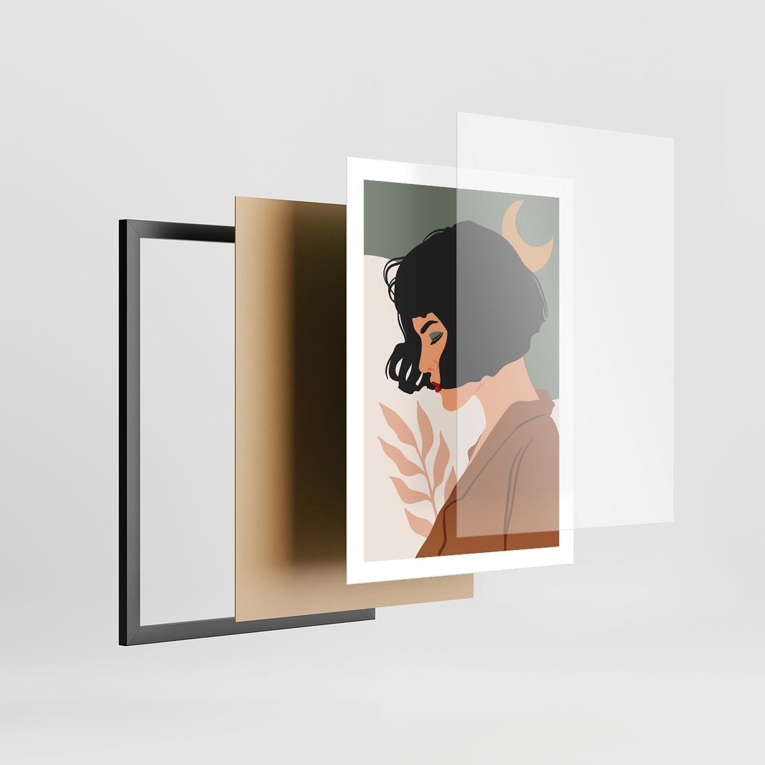 Odkryj urok nowoczesnego plakatu w stylu retro, prezentującego delikatny portret kobiety w stonowanych, subtelnych kolorach. To artystyczne połączenie przeszłości i współczesności, tworzące elegancką kompozycję pełną wyrafinowanego uroku.