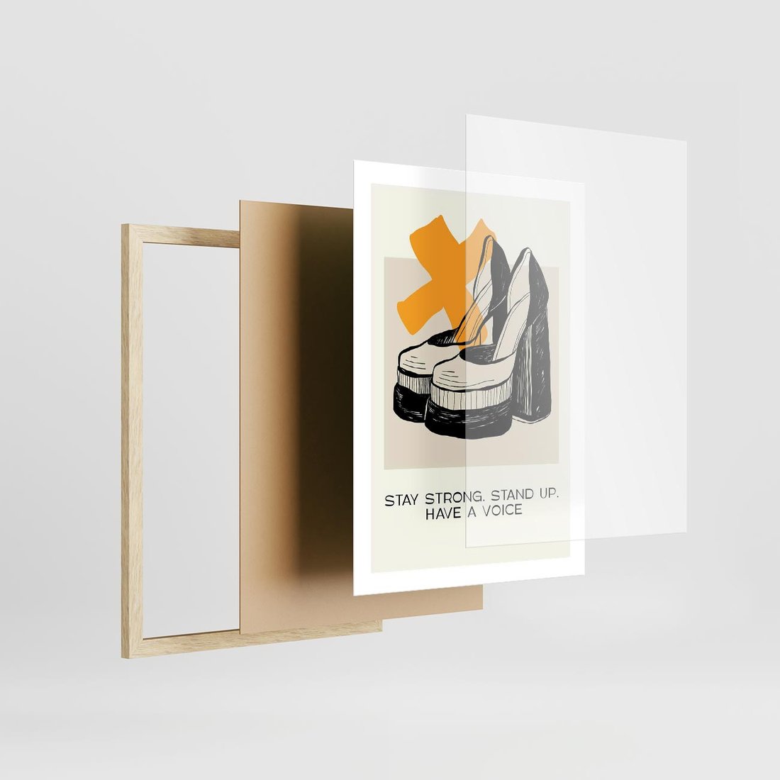 Plakat w ramie 50x70 - Kobiece Obcasy - plakat, minimalizm - rama drewno