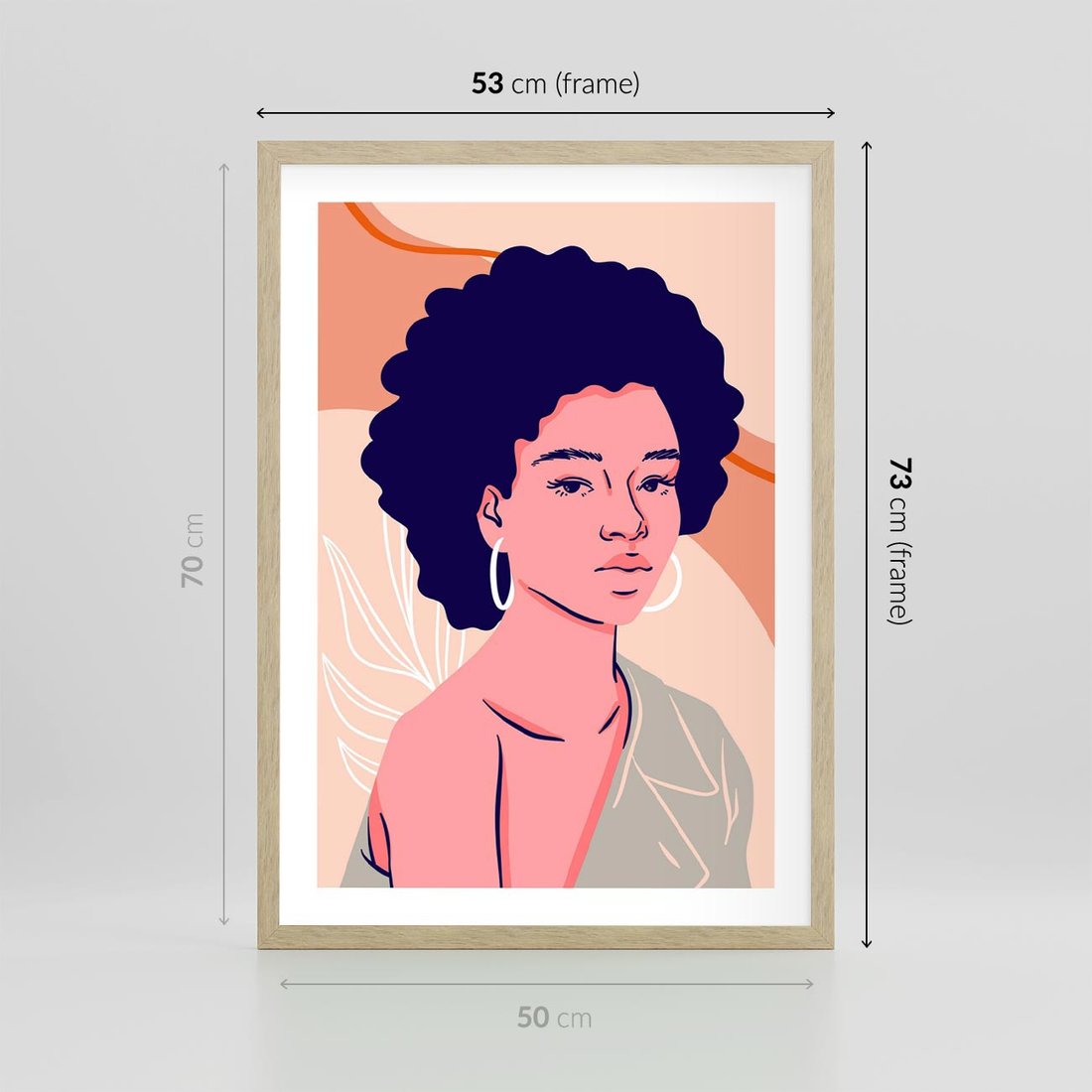 Plakat w ramie 50x70 - Kobiecy Kształt Świata - nowoczesny plakat, styl retro - rama drewno