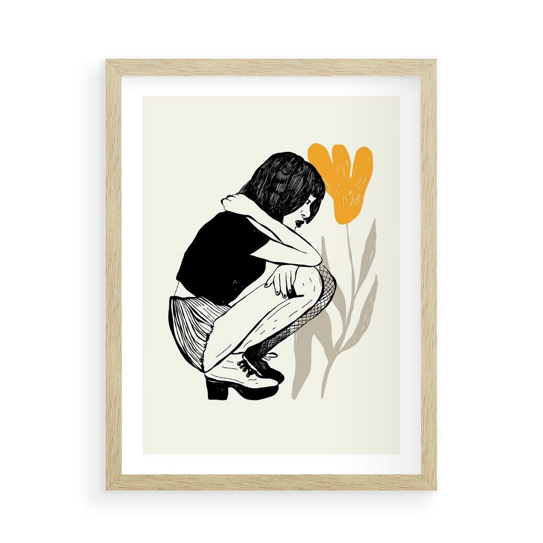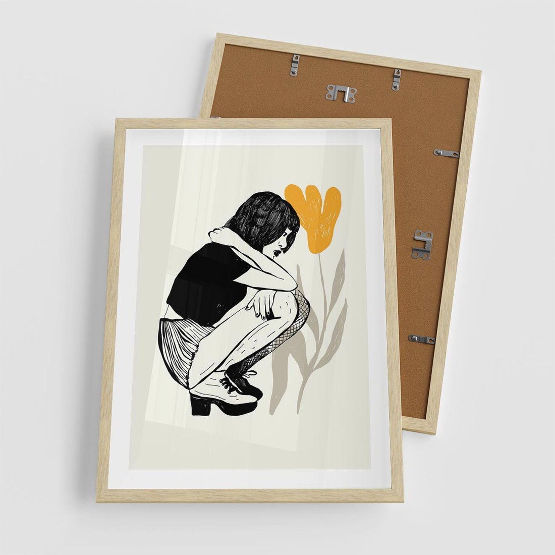 Plakat w ramie 50x70 - Kobiecy Plakat - prosta grafika, kobieta - rama drewno