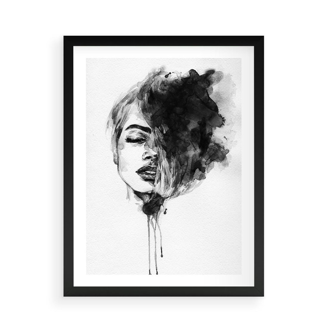 Plakat w ramie 50x70 - Kobieta w akwareli - kobieta, akwarela - rama czarna